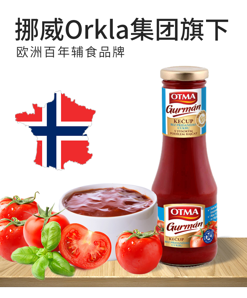 挪威进口哈梅熊番茄酱调味果酱儿童辅食沙拉300g低糖
