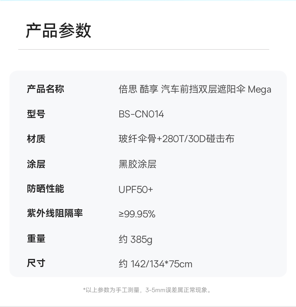 倍思 酷享 汽车前挡双层遮阳伞 Mega 星曜黑