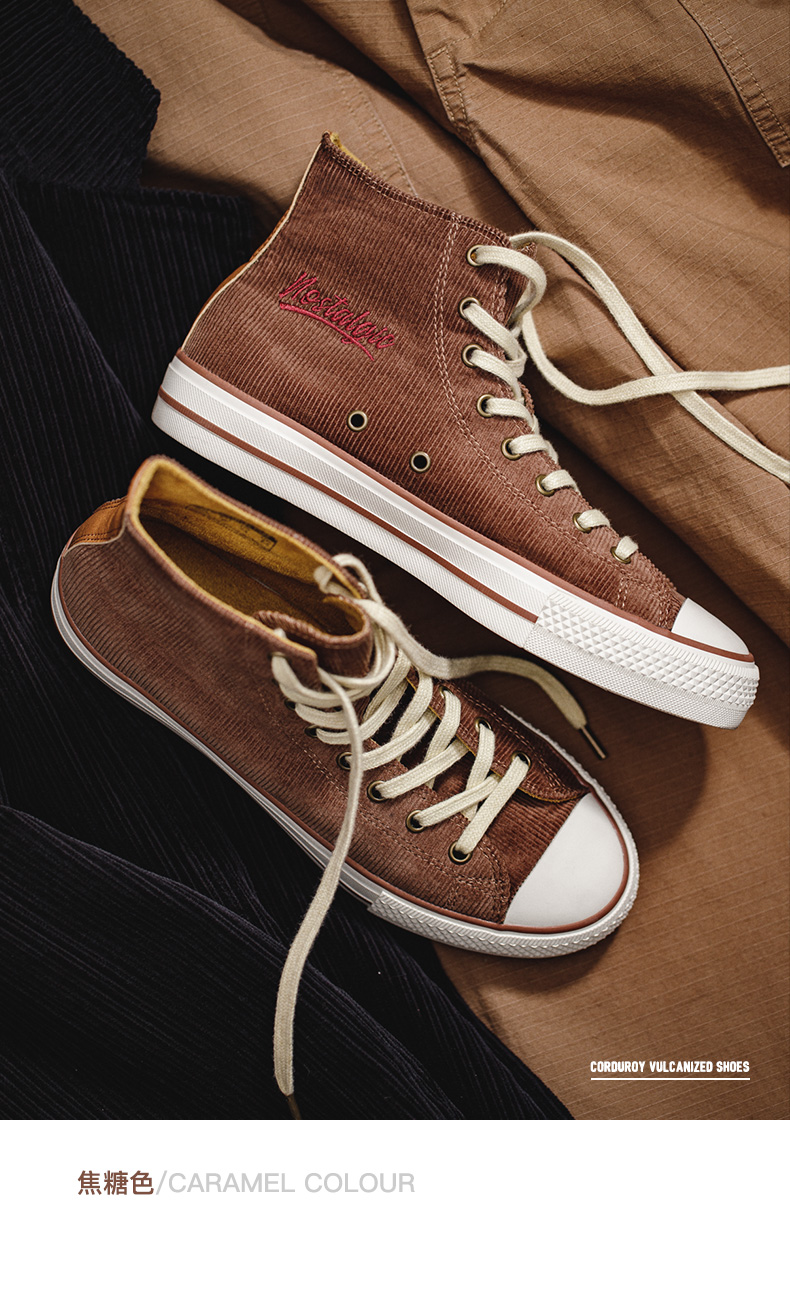【马登男鞋】2025夏季新款复古灯芯绒高帮板鞋潮流百搭低帮休闲布鞋潮鞋子