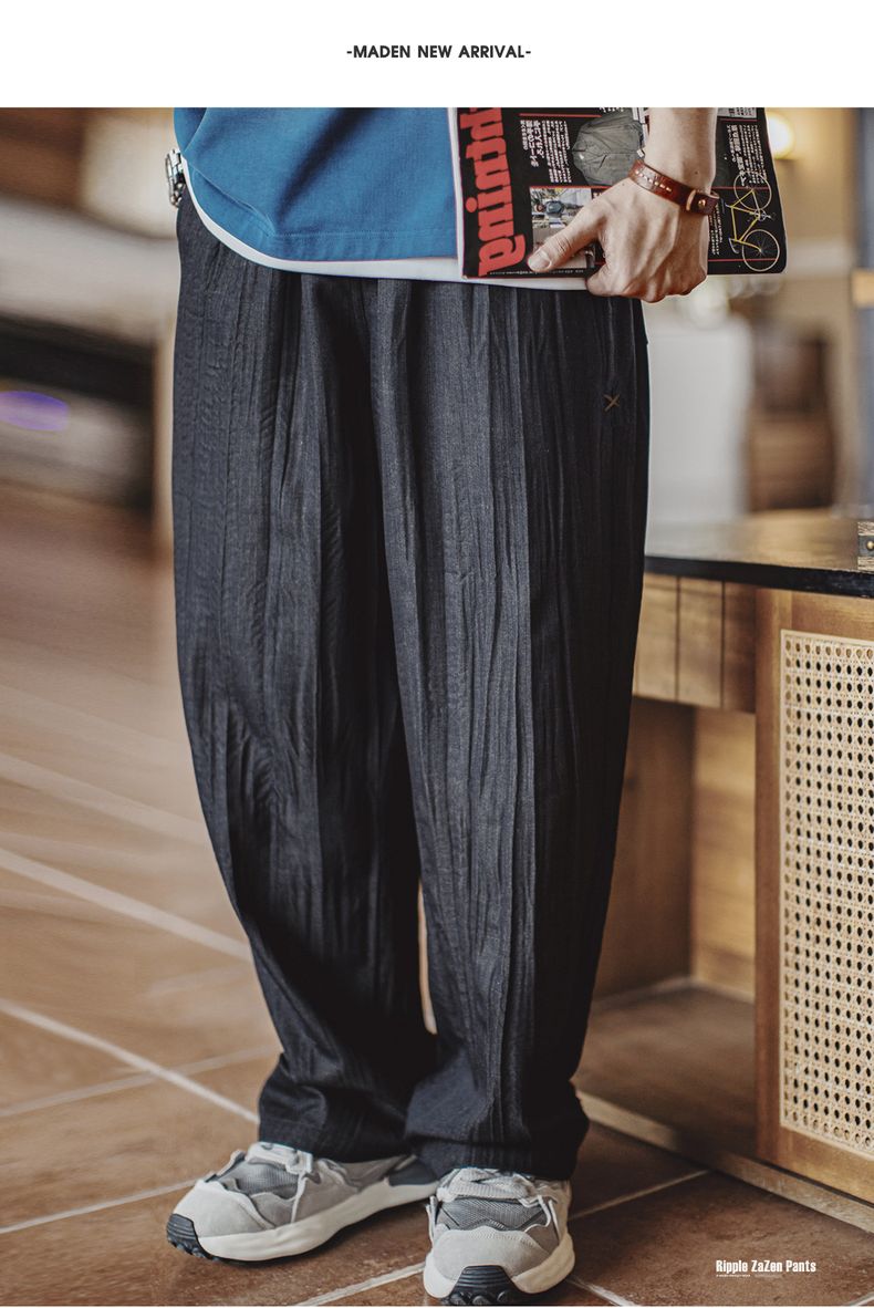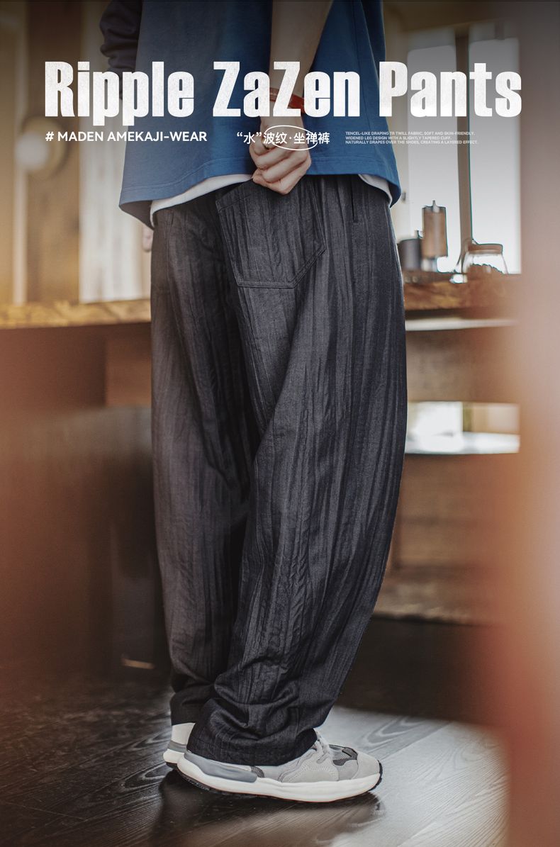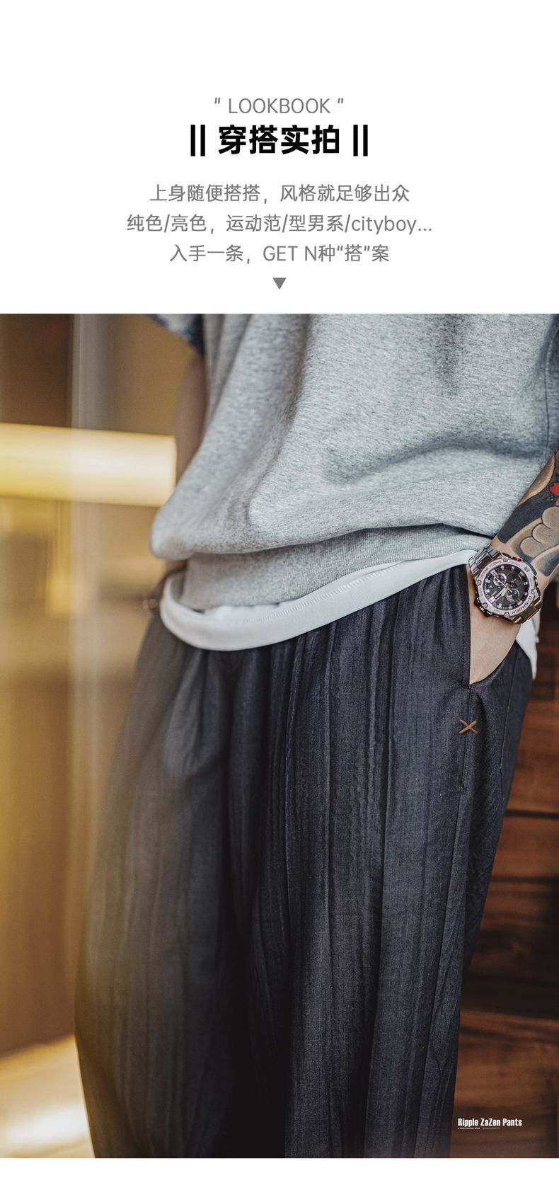 工装优选 美式休闲水波纹褶皱坐禅裤日系松弛cityboy休闲裤男春夏