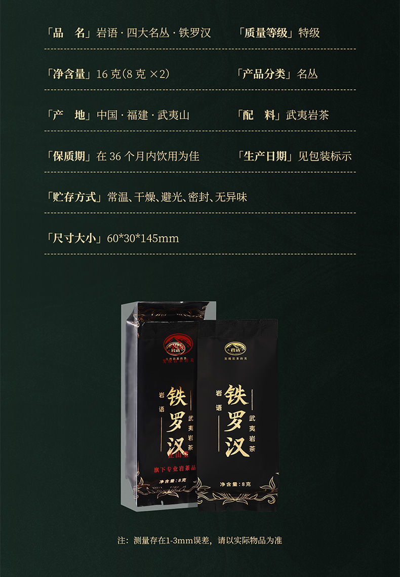 岩语 铁罗汉 岩茶武夷山特级乌龙茶四大名丛武夷岩茶品鉴装16g