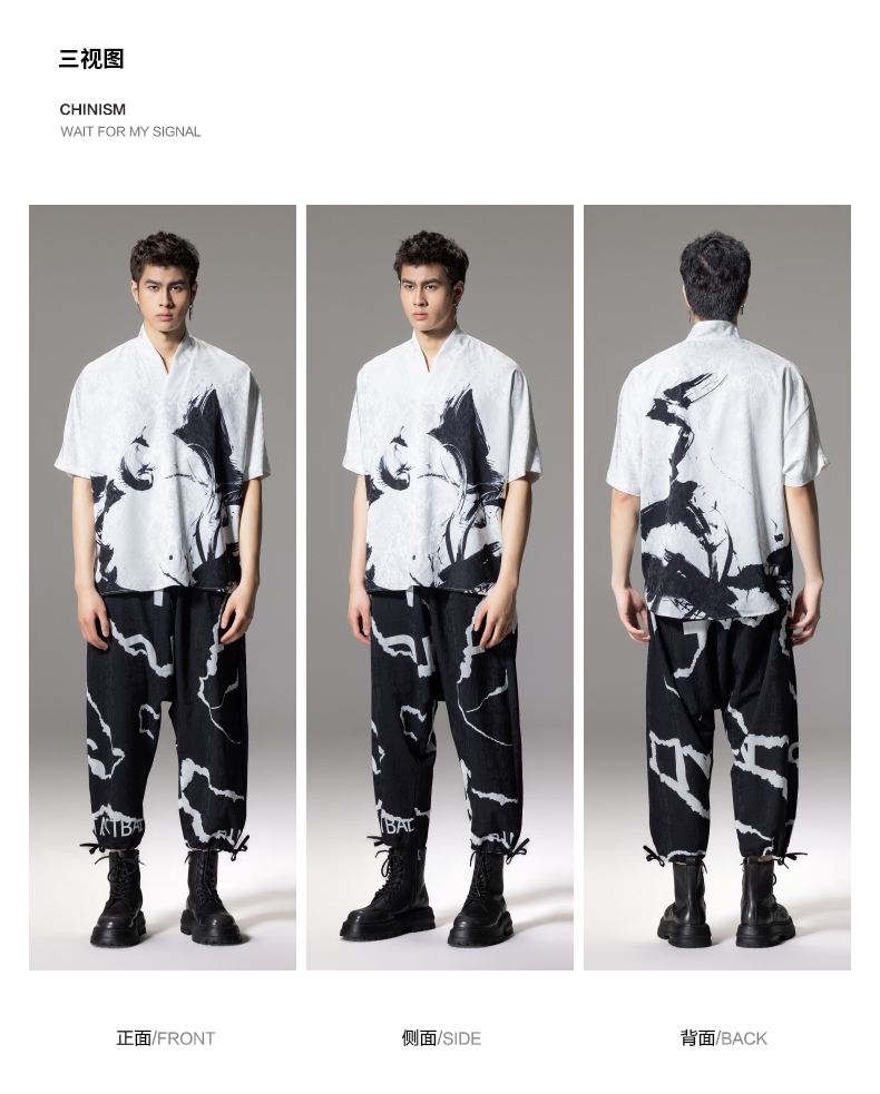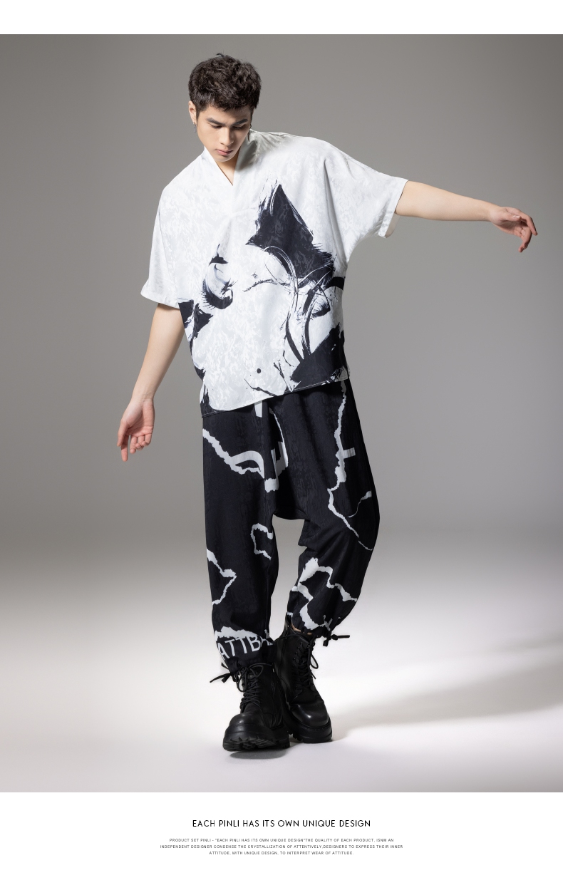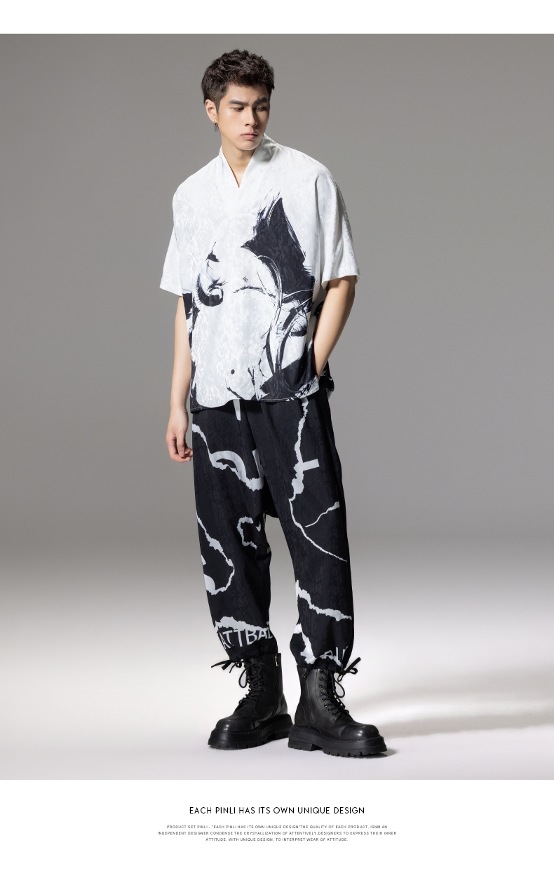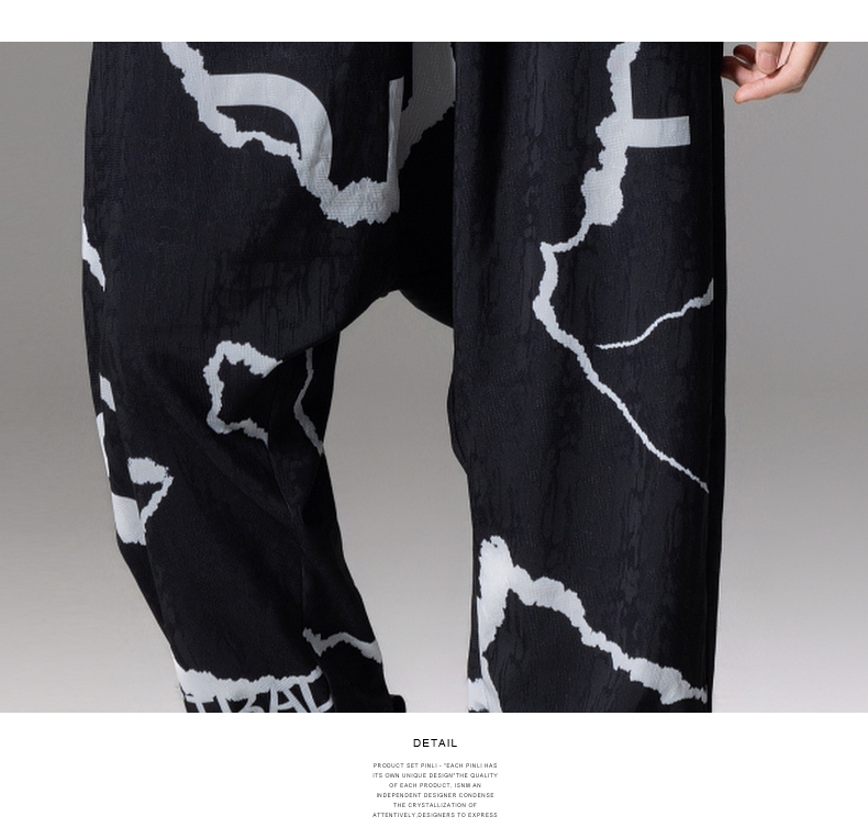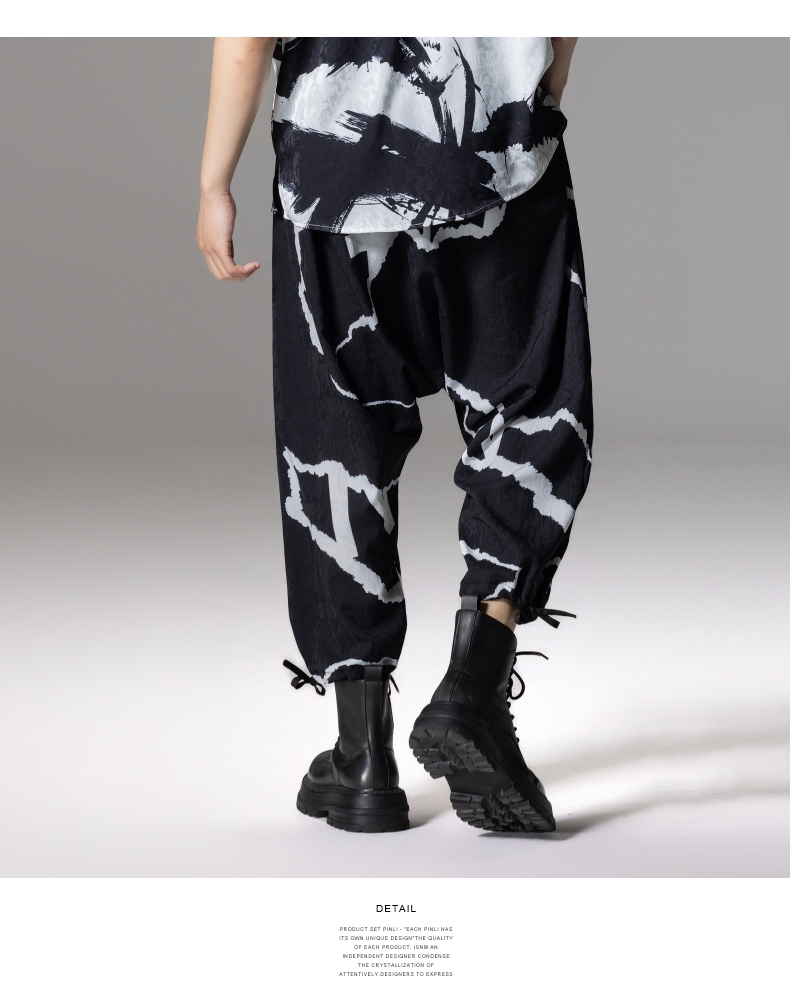 PINLI品立夏季新款印花撞色束脚裤宽松九分裤男士潮牌休闲裤B242117176