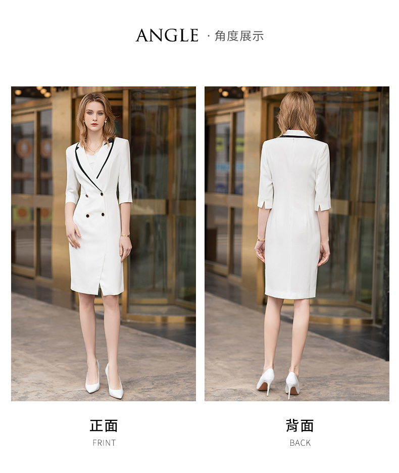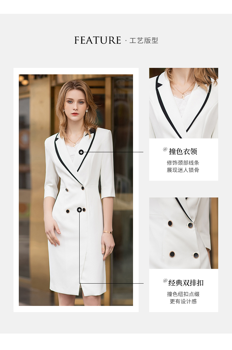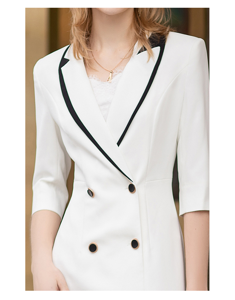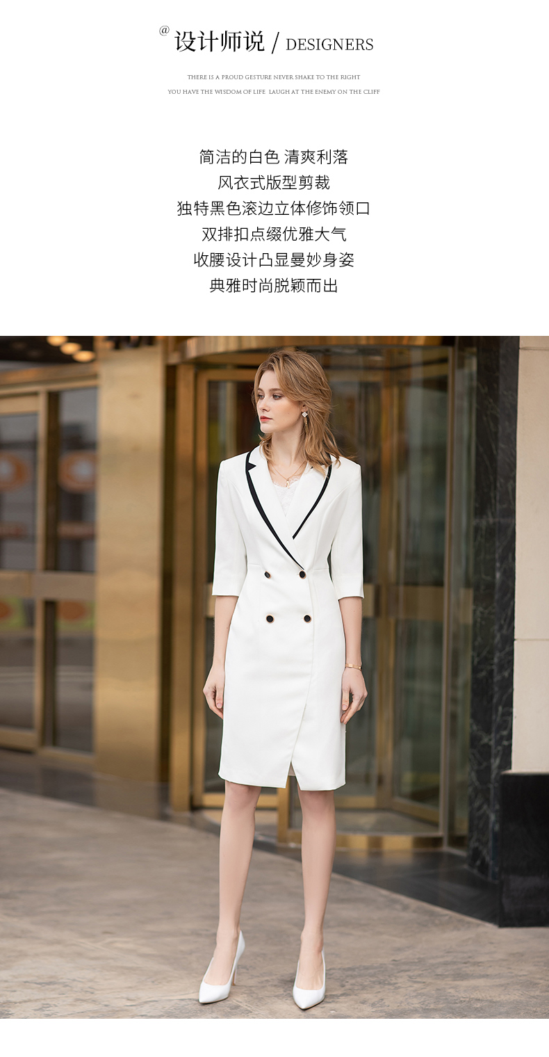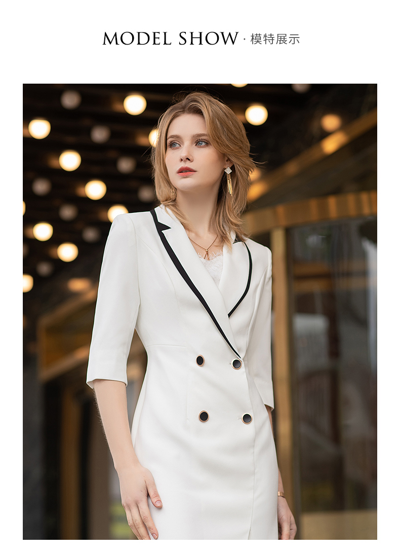 高端白色拼接连衣裙男女夏新款美容师工作服气质修身西装裙通勤ol