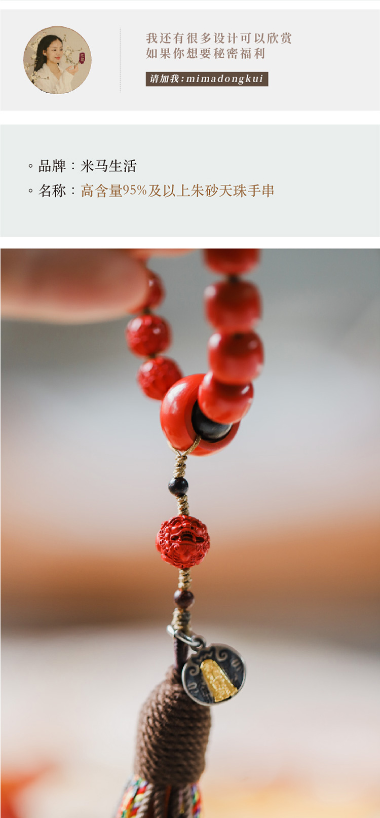米马原创设计 化太岁 高含量95%及以上朱砂天珠手串 满满正能量获得平静和智慧