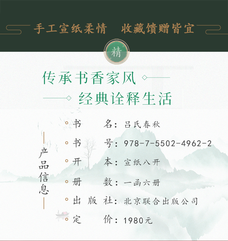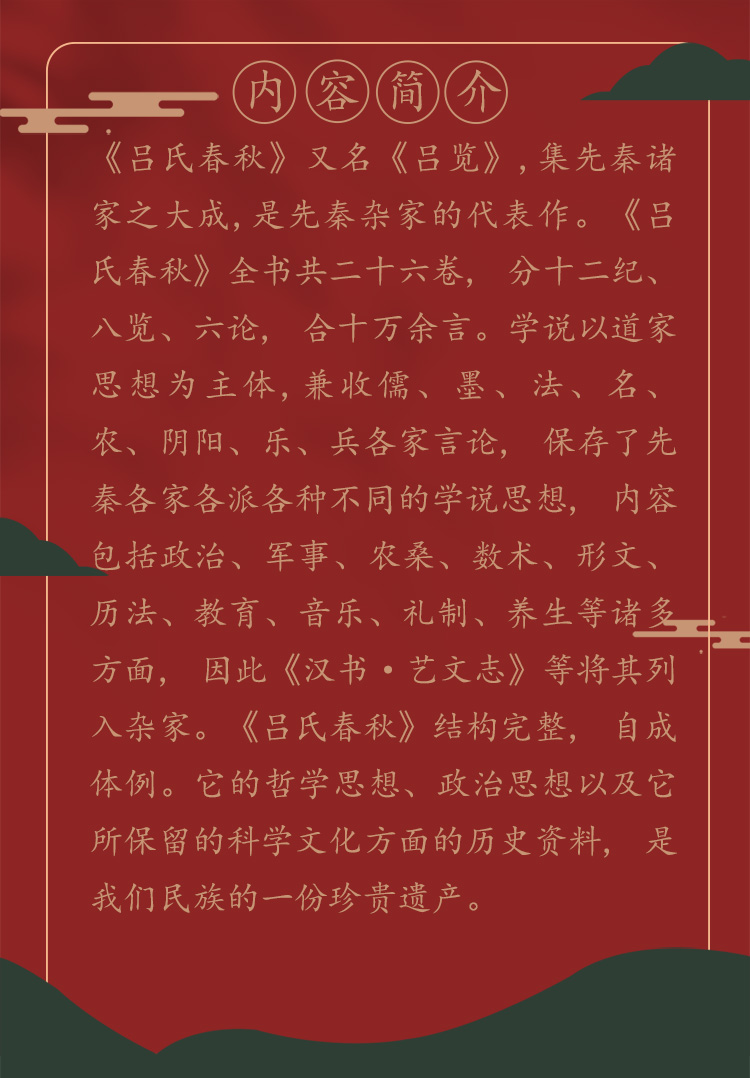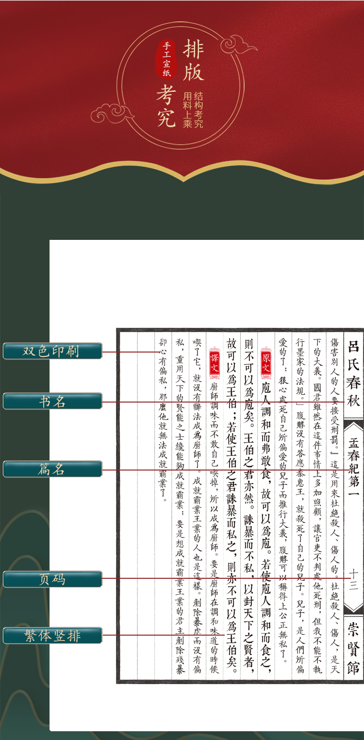 古体本《吕氏春秋》 手工宣纸线装繁体竖排(一函六册)