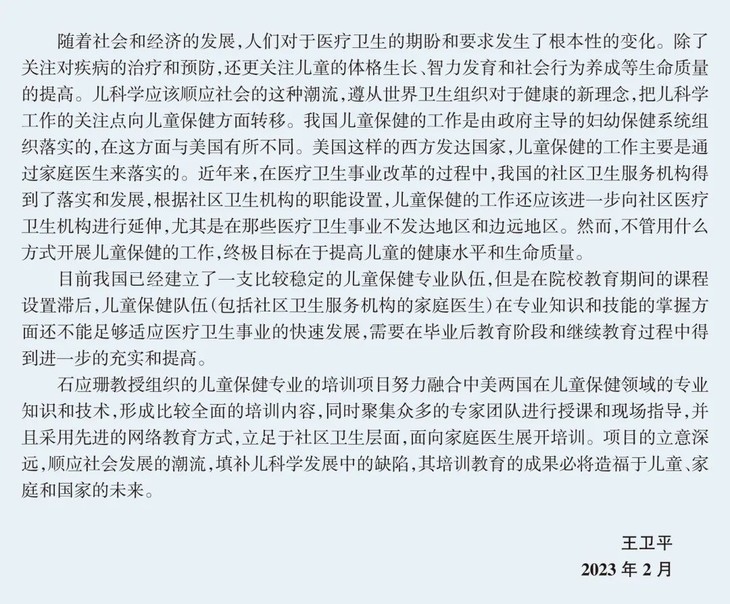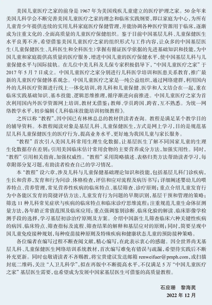 1. 本书旨在规范中国基层儿科和儿童保健医生的医疗行为,提高其业务水平,为中国儿童和家庭提供高质量的医疗服务,使中国基层儿科和儿童保健水平与国际接轨。