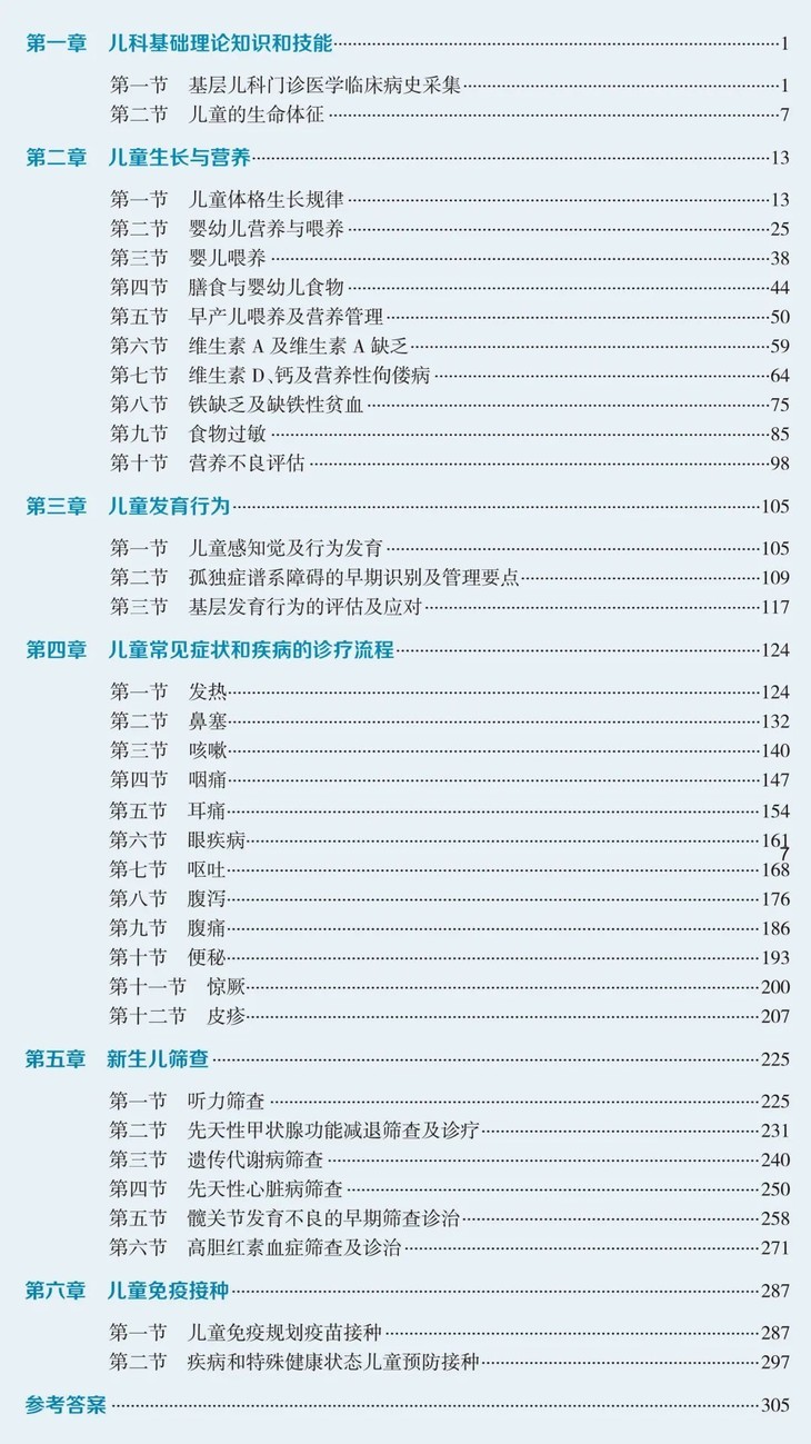 2. 共分为六章,内容包括儿科基础理论知识和技能、儿童生长与营养、儿童发育行为、儿童常见症状和疾病的诊疗流程、新生儿筛查、儿童免疫接种。