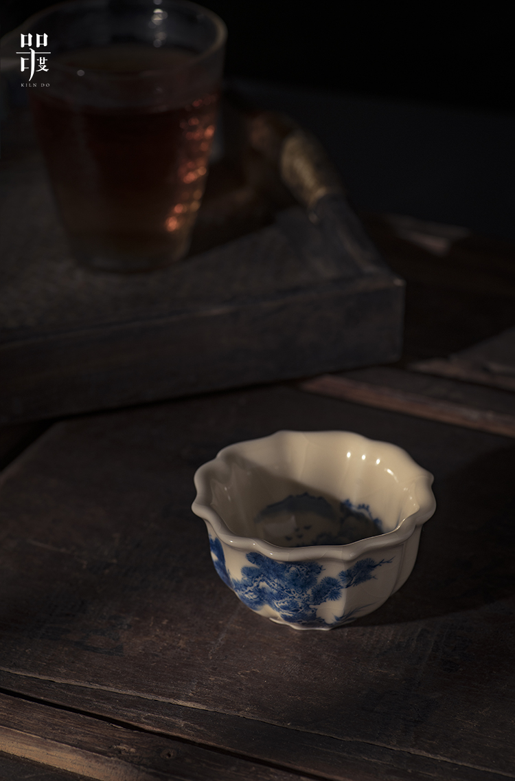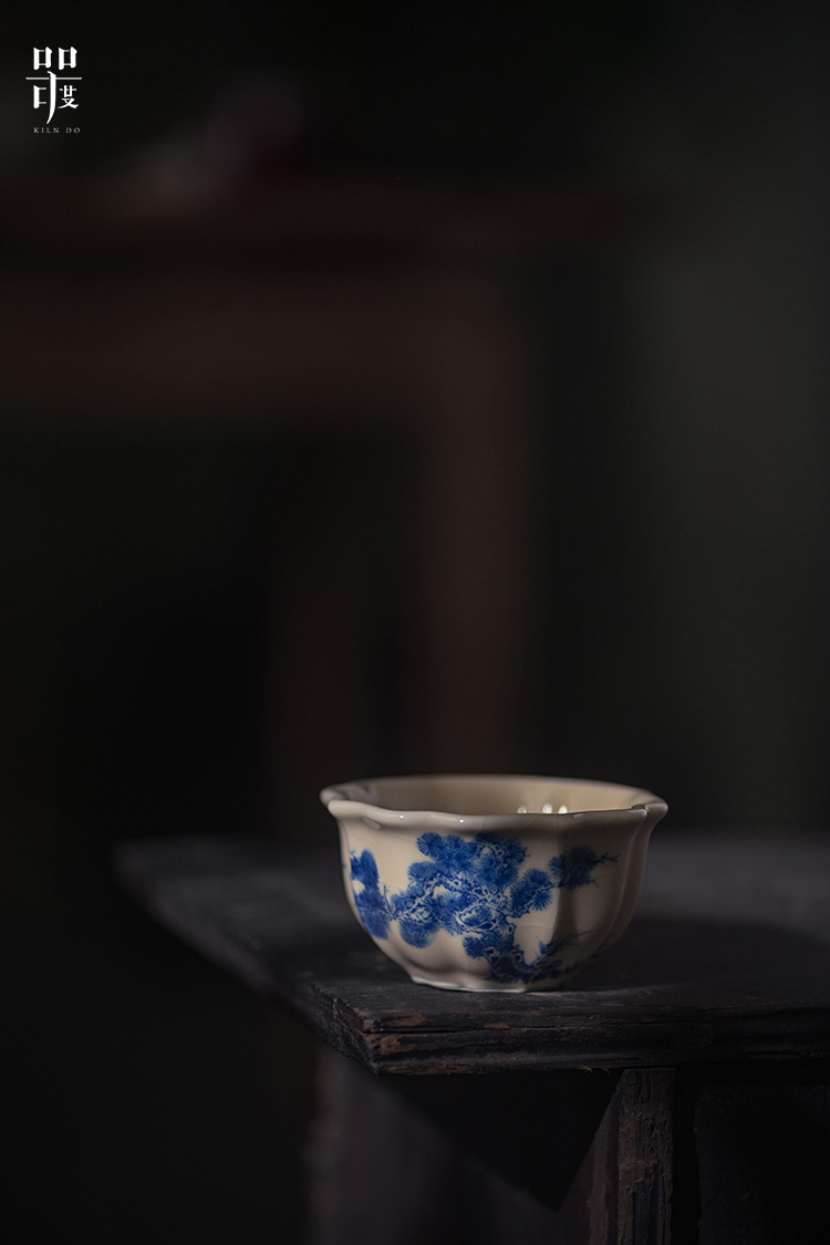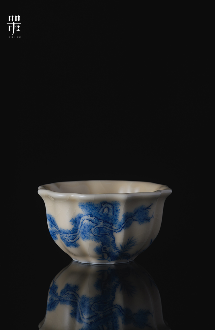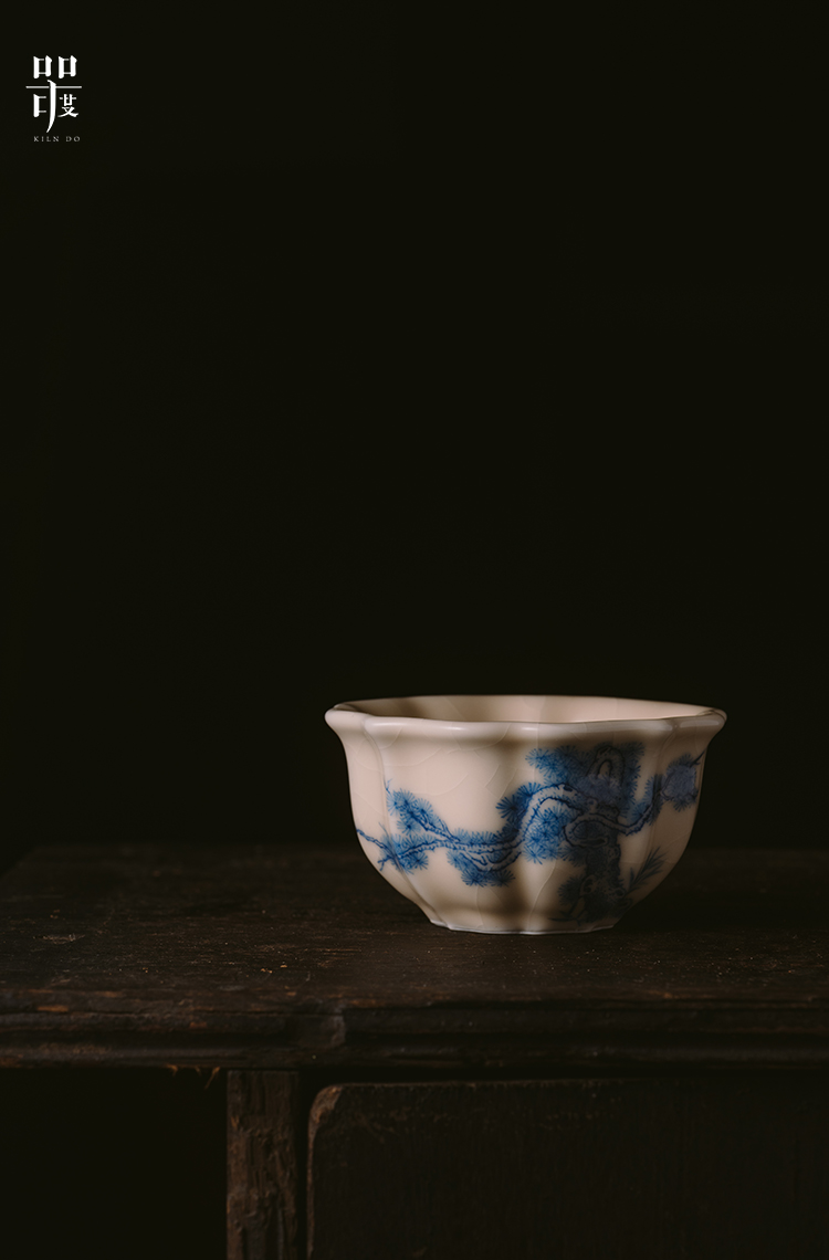 问鼎器度汝窑鹅黄青花宝相杯(山水青松图)(缠枝莲)(写意紫藤)(缺货)