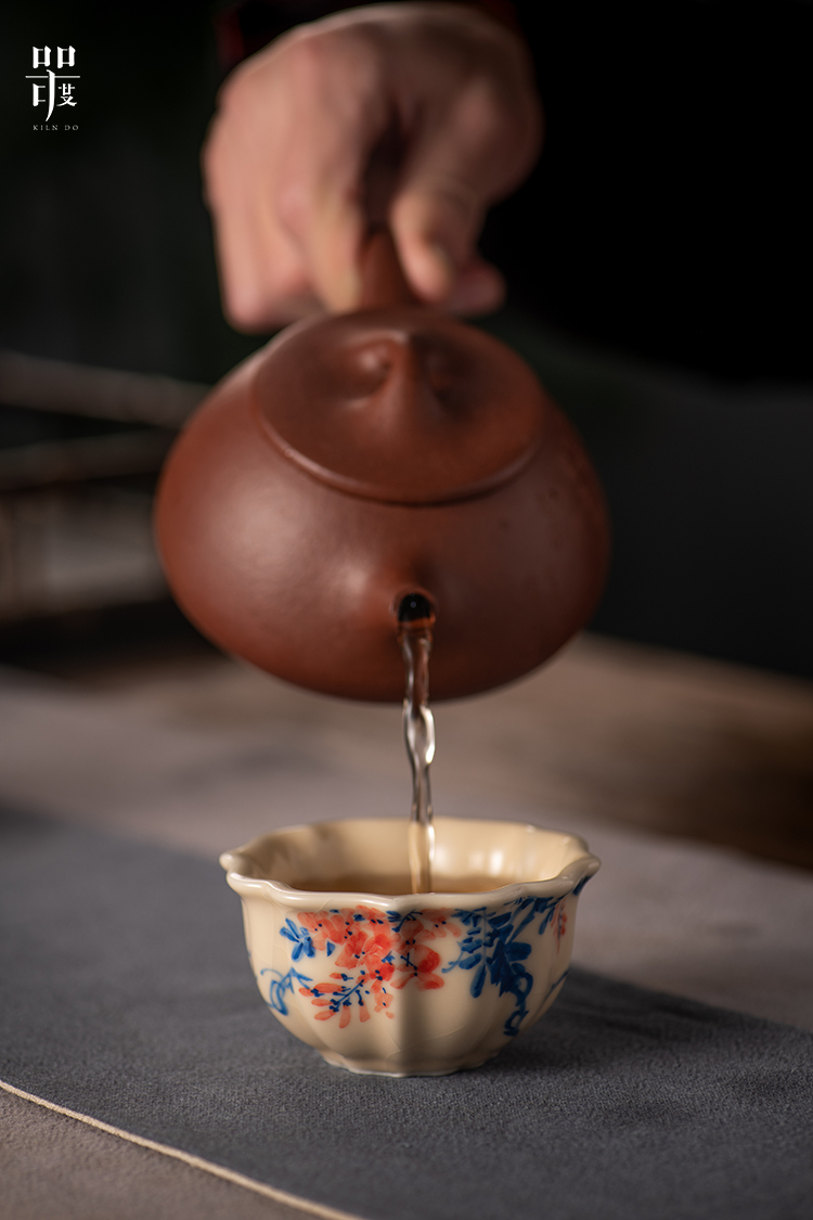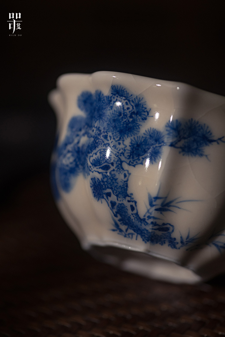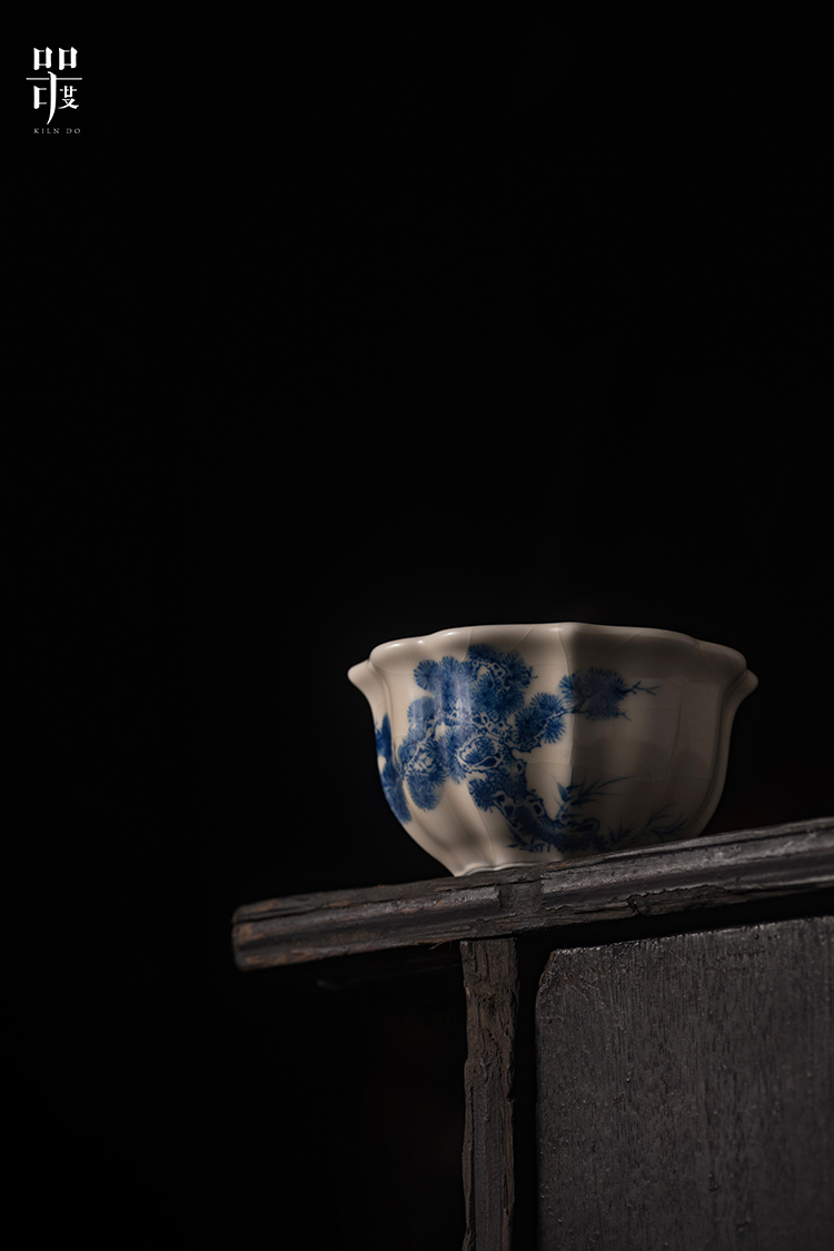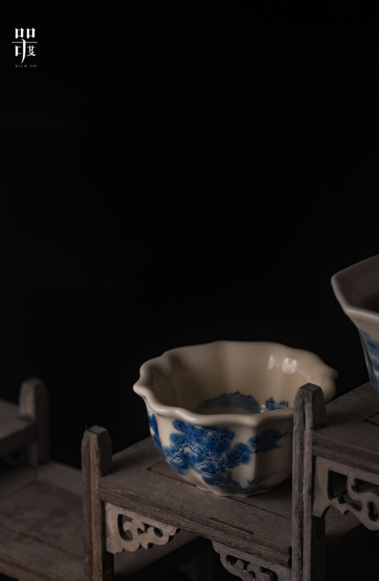 问鼎器度汝窑鹅黄青花宝相杯(山水青松图)(缠枝莲)(写意紫藤)(缺货)
