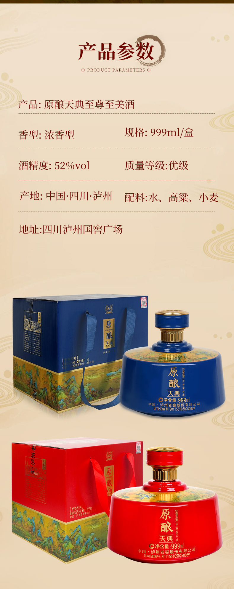 【积分当钱花】52度 原酿天典酒至尊至美 999ml*2 泸州老窖官方旗舰店
