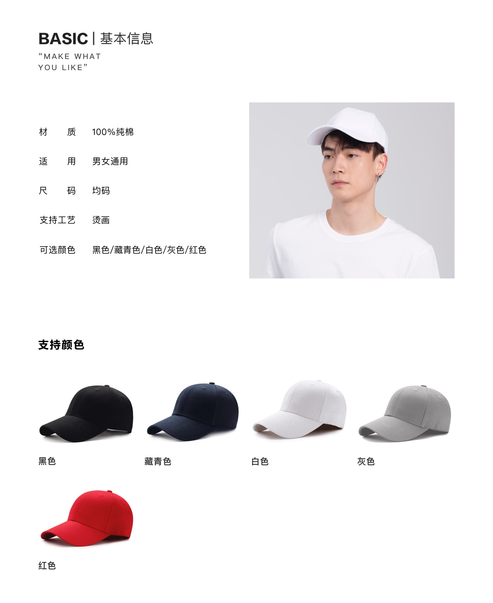 周边diy印字印图印logo纯棉经典棒球帽