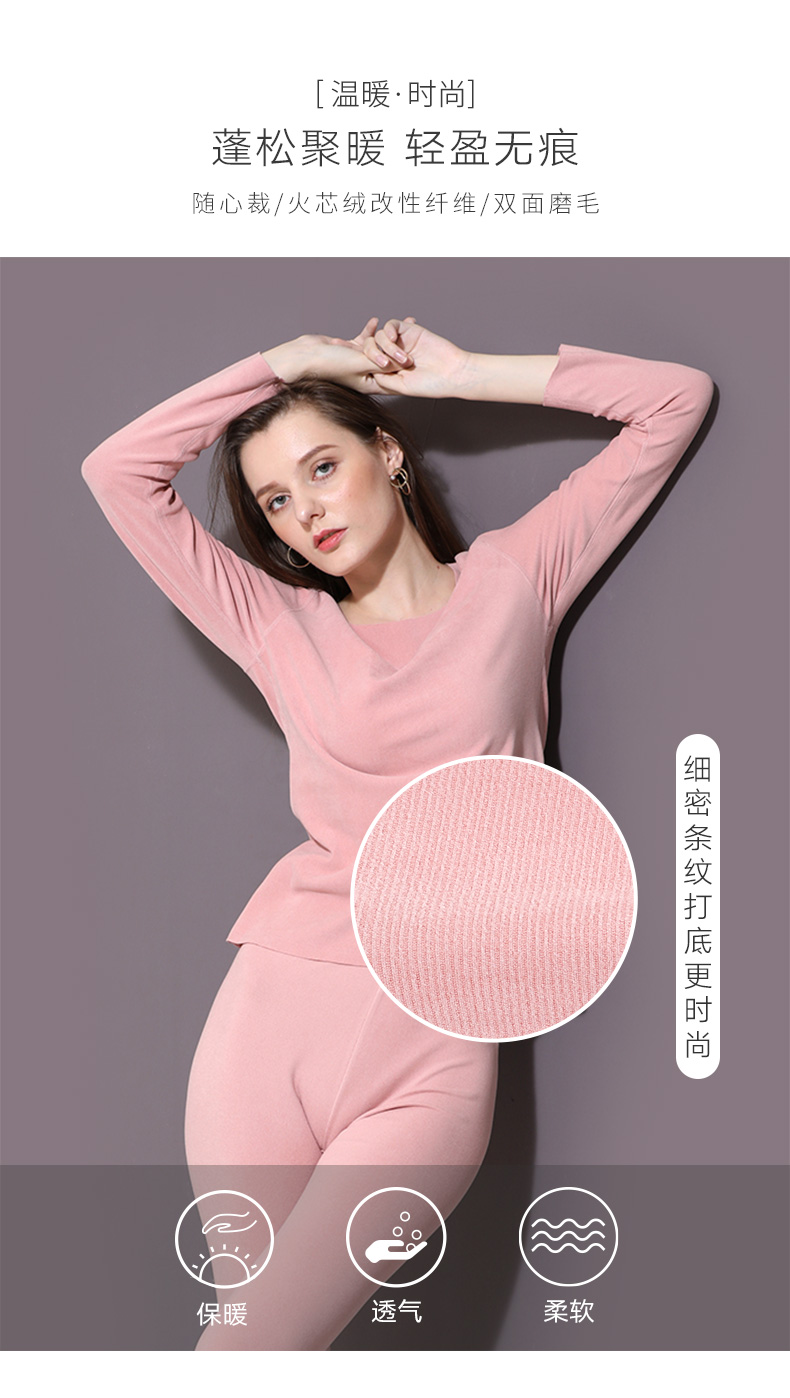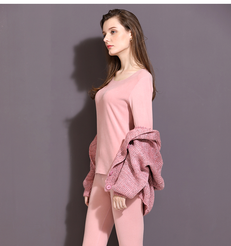 雅黛丽女士内衣保暖打底内衣圆领纯色保暖套装秋衣裤套装长袖长裤YB09254