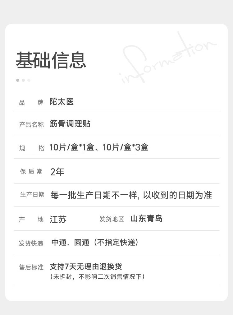 每满3盒减69元【陀太医 筋骨调理贴】 凝胶伴侣!1+1>2!结合使用,效果加倍!10片/盒