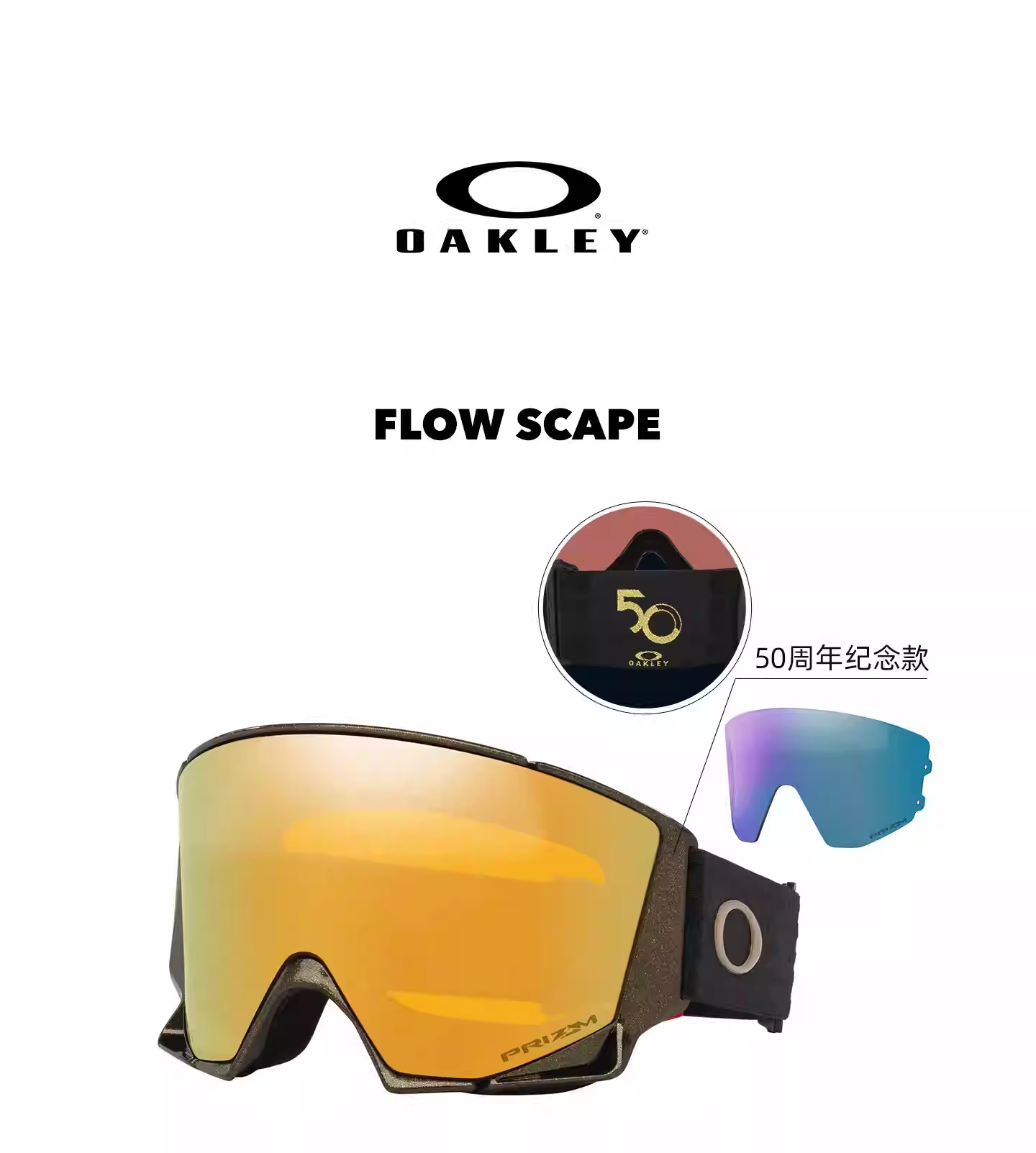 【50周年限量款】Oakley欧克利FLOW SCAPE 24K金色户外装备滑雪眼镜双镜片0OO7145A