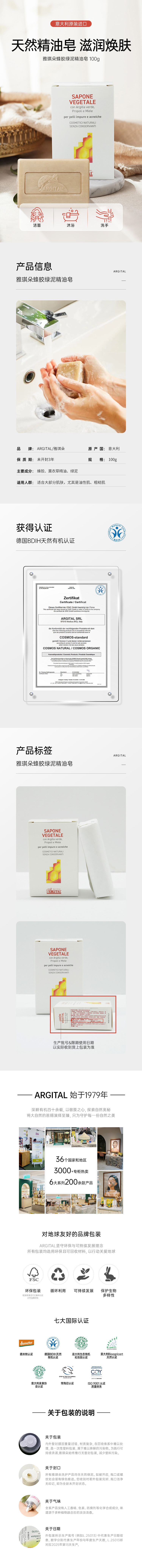 雅琪朵:蜂胶/甜杏仁绿泥精油皂 100g
