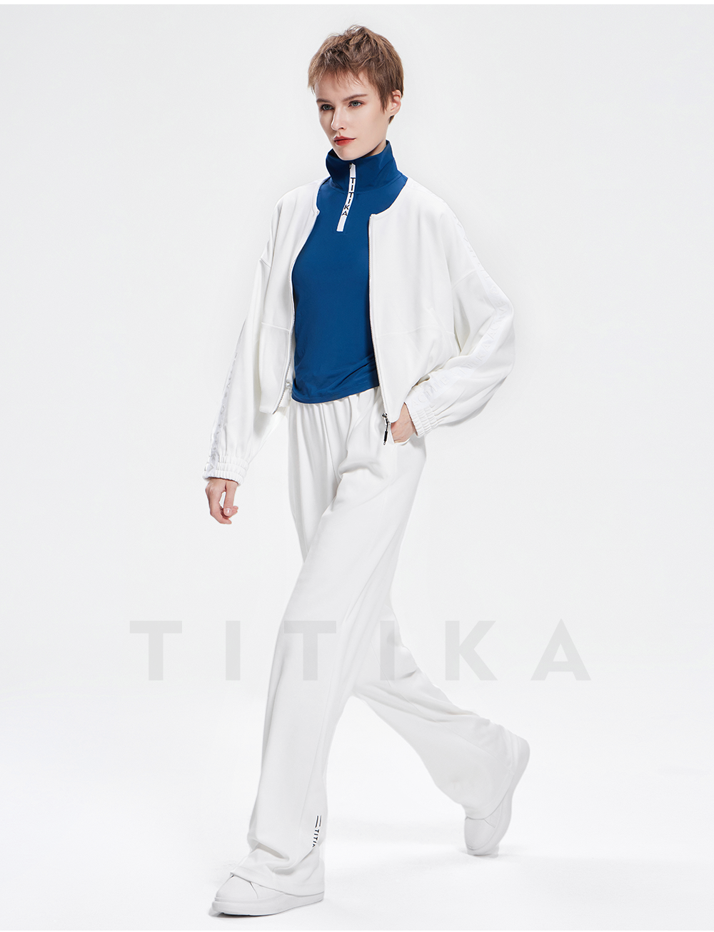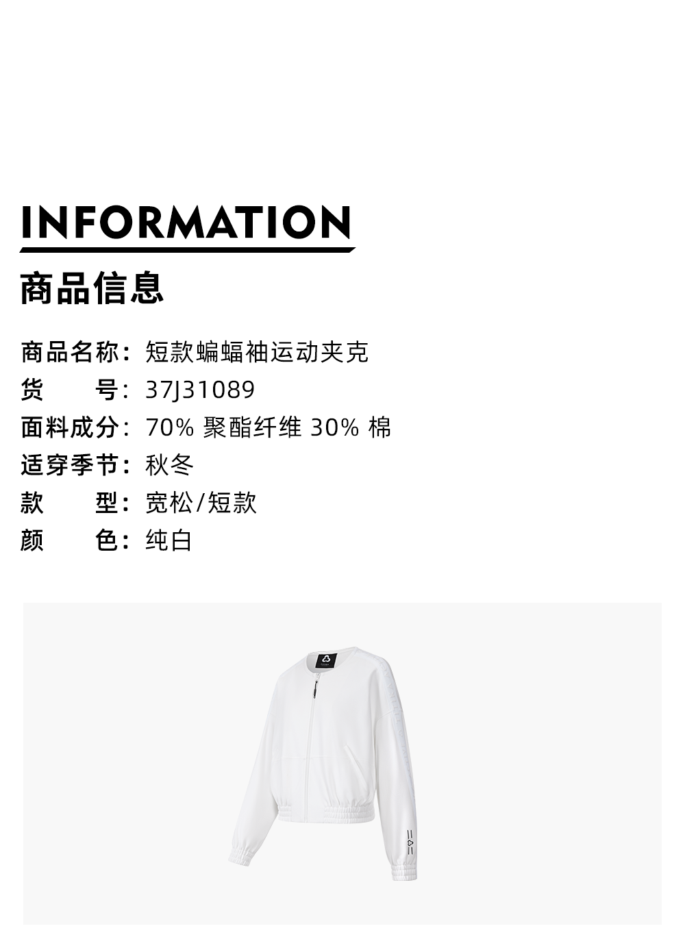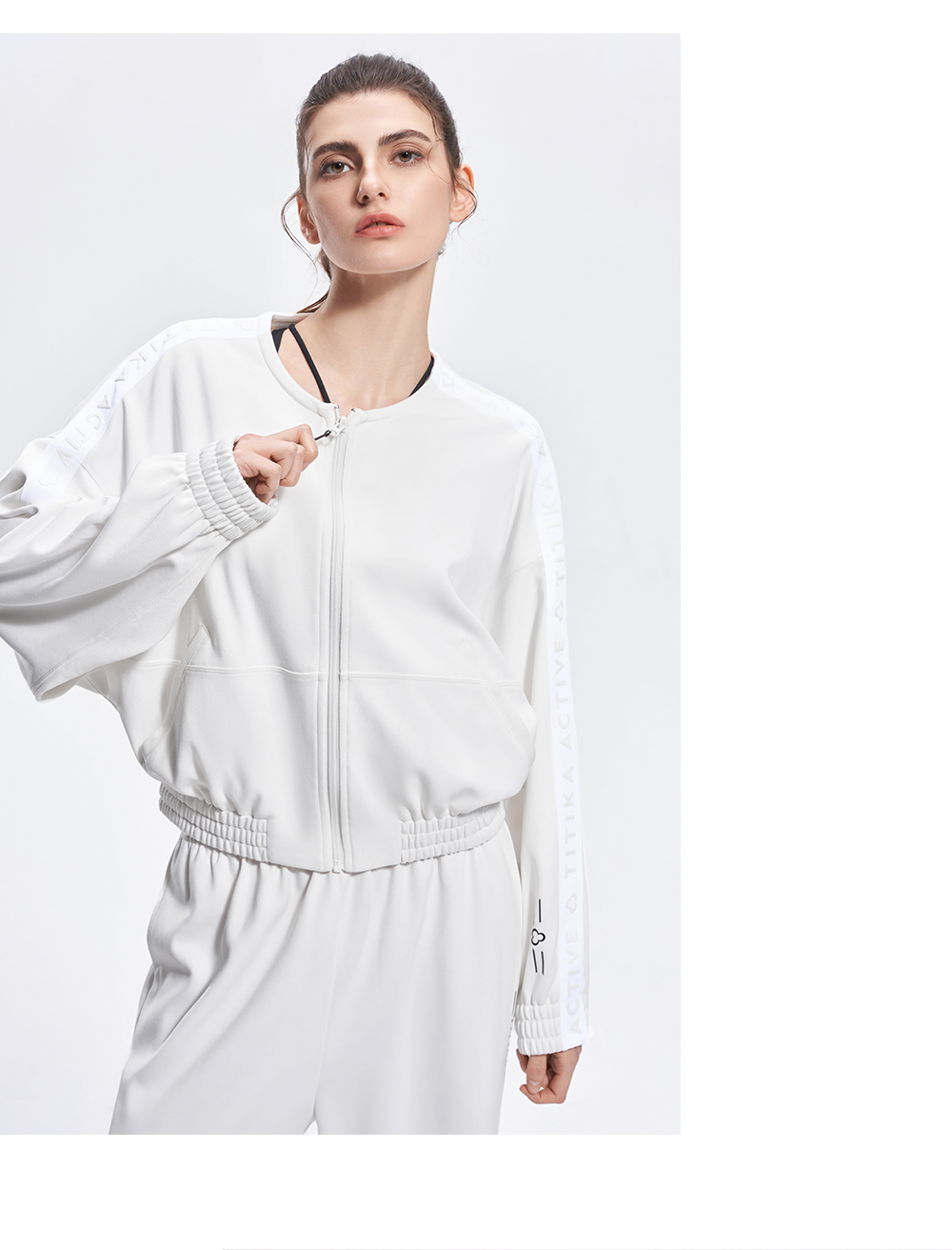 TITIKA短款蝙蝠袖运动夹克女秋季通勤户外休闲复古宽松纯白外套37J31089