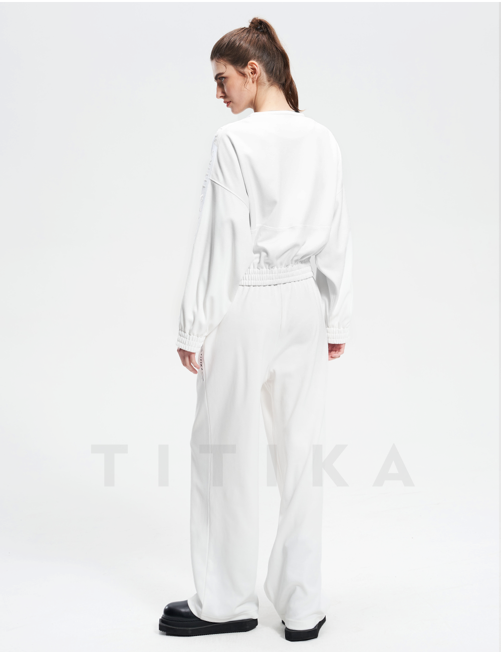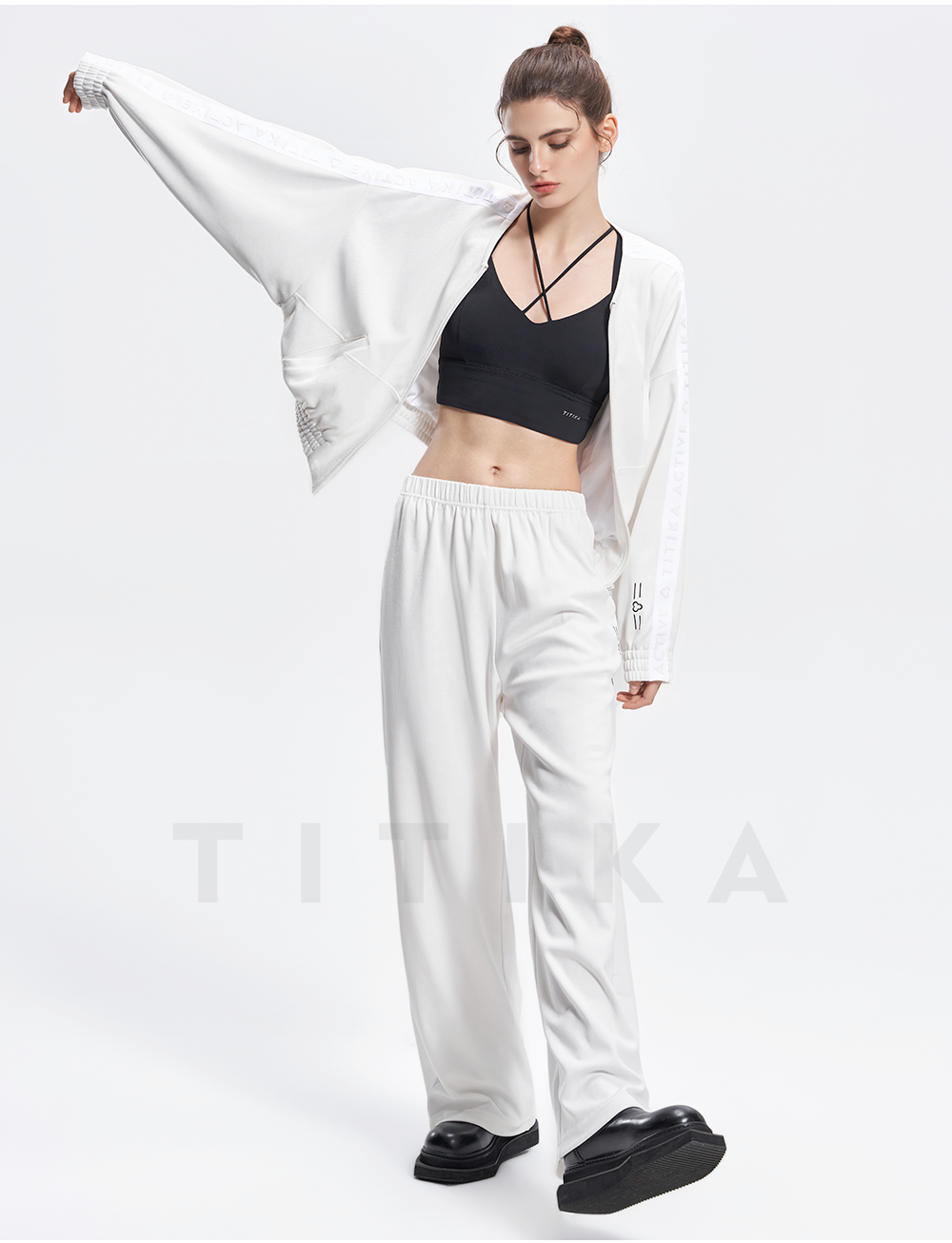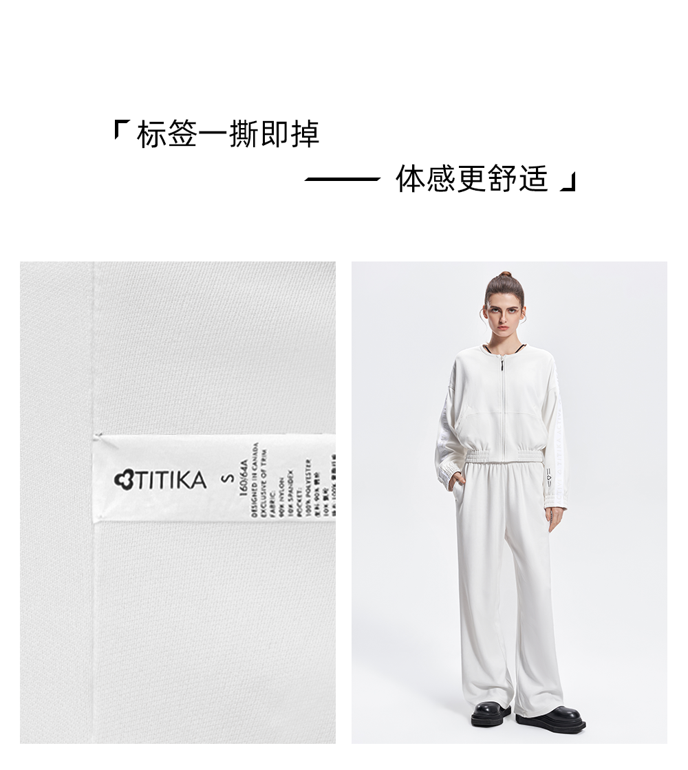 TITIKA短款蝙蝠袖运动夹克女秋季通勤户外休闲复古宽松纯白外套37J31089