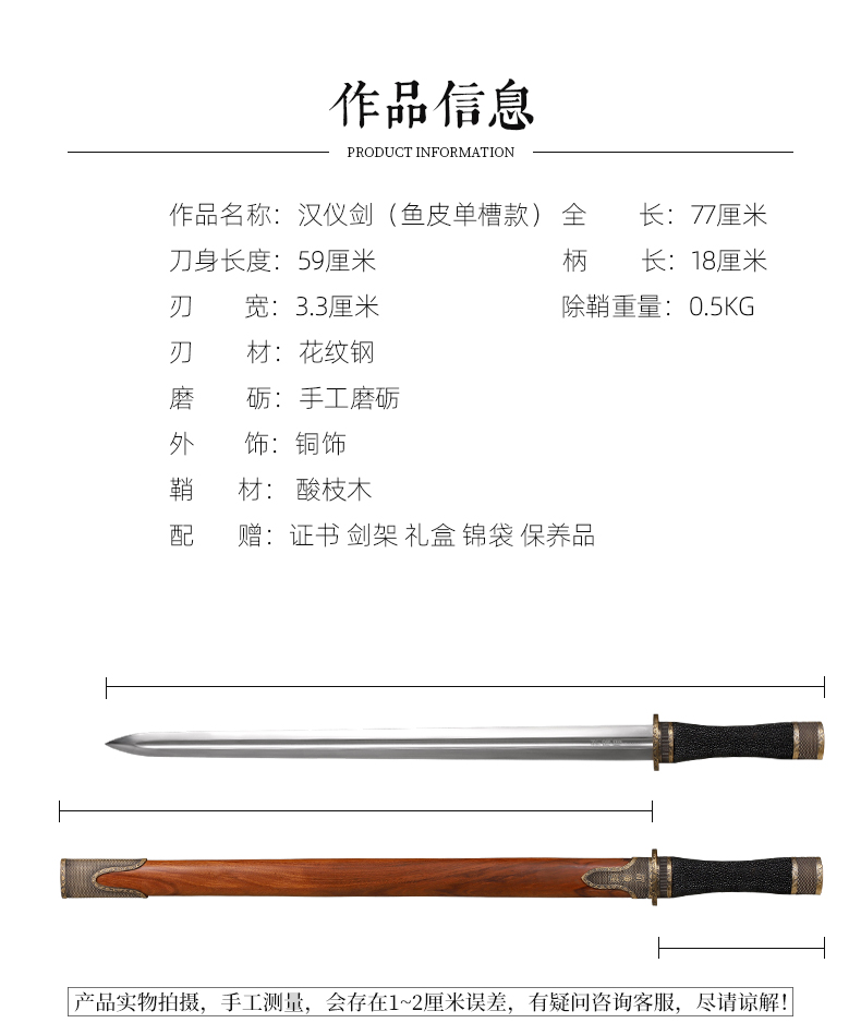 汉仪剑 汉剑 沈广隆宝剑 龙泉花纹钢宝剑 传统工艺宝剑 未开刃sgl-3167