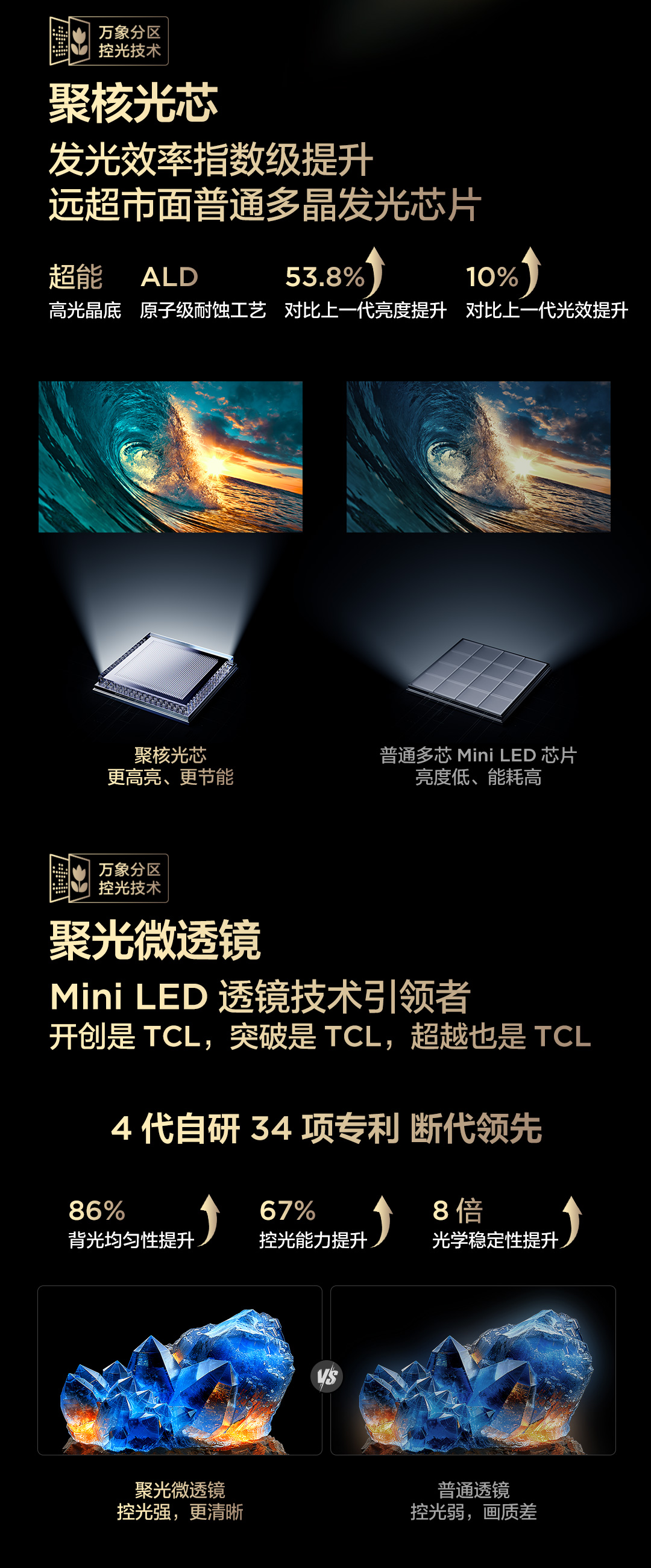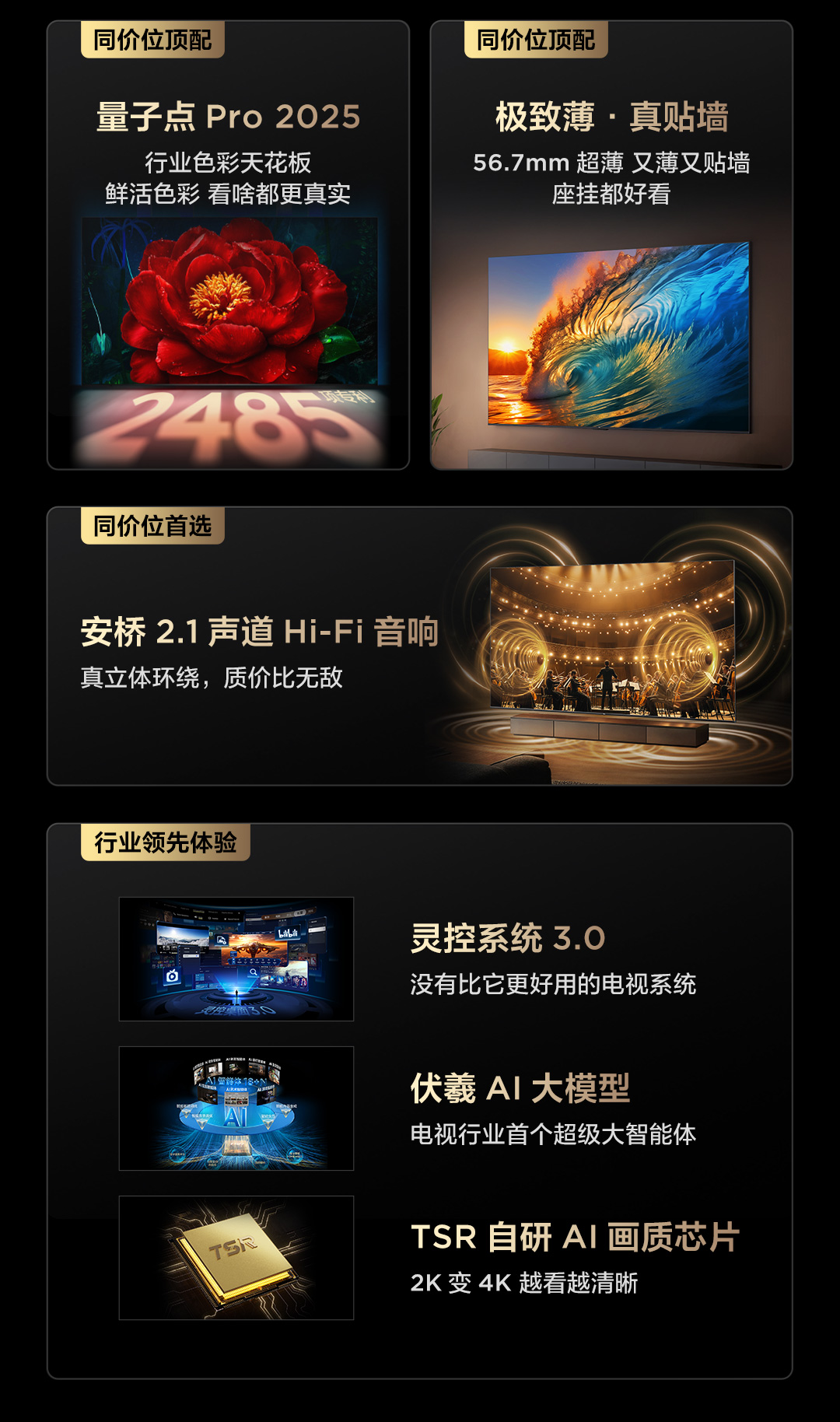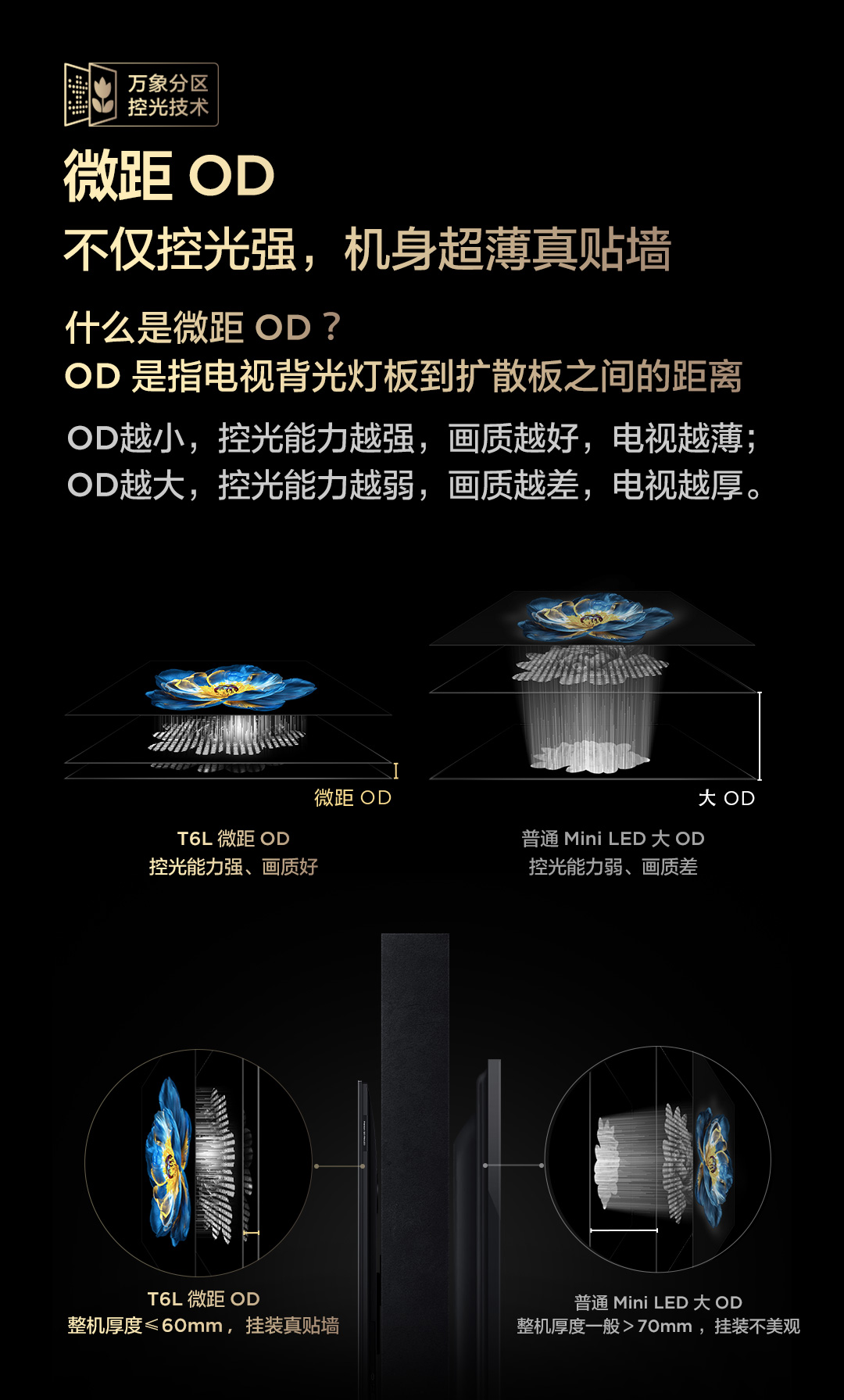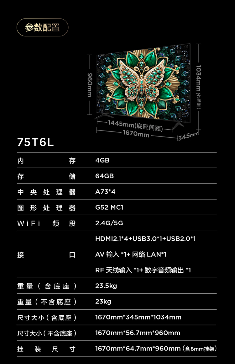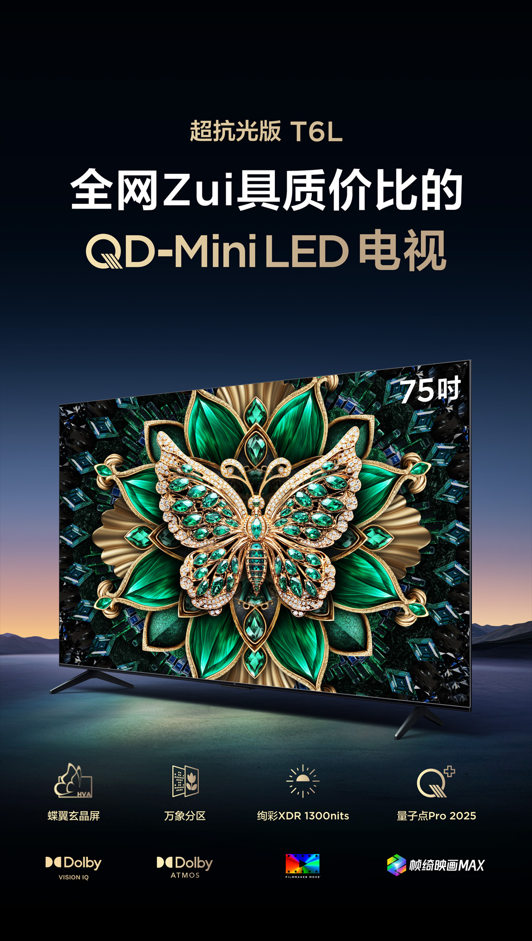 【TCL电视】 75T6L 75英寸 QD-Mini LED 万象分区 QLED量子点 绚彩XDR 1300nits 超薄电视