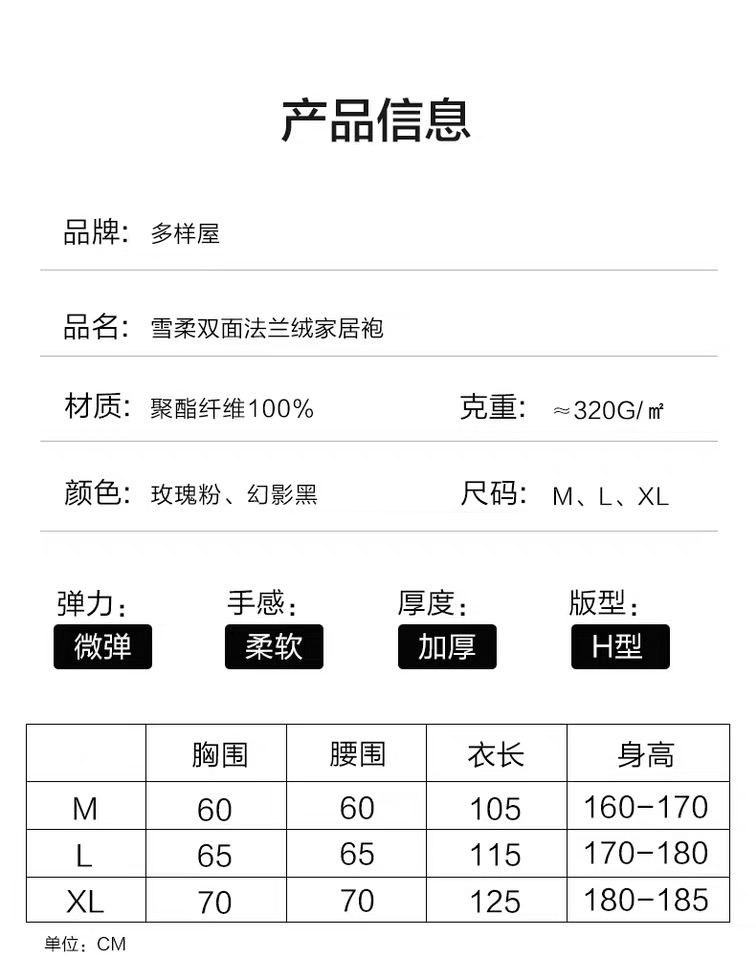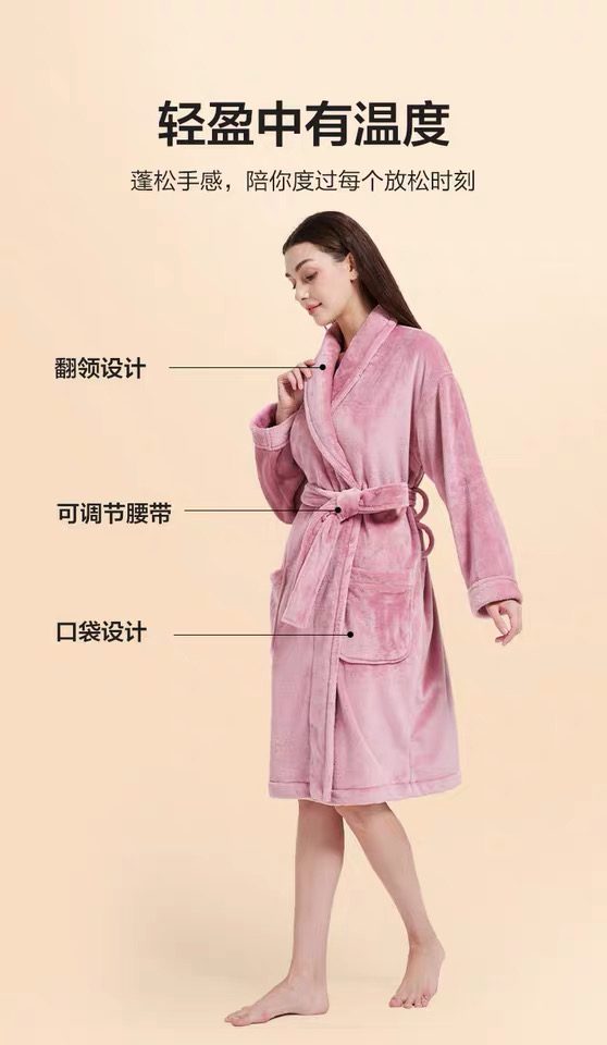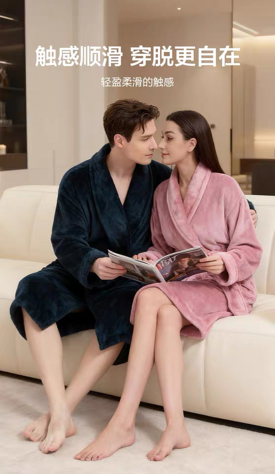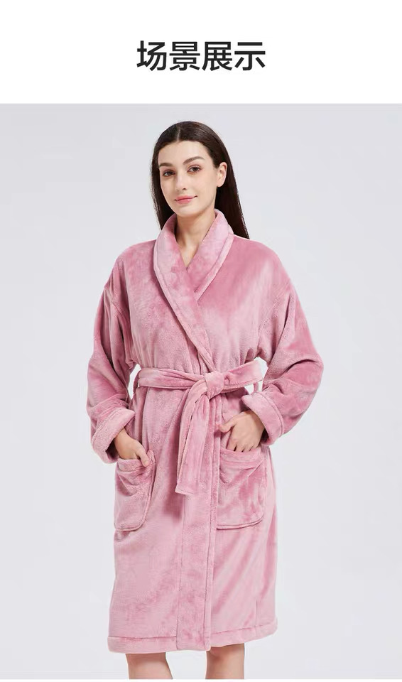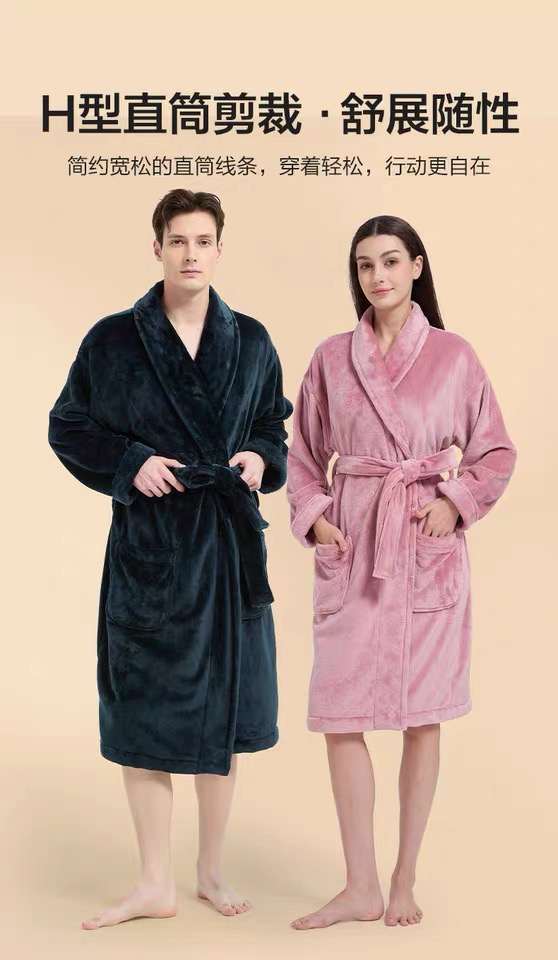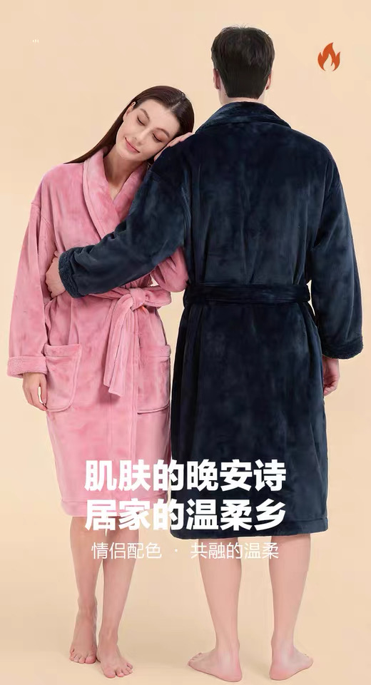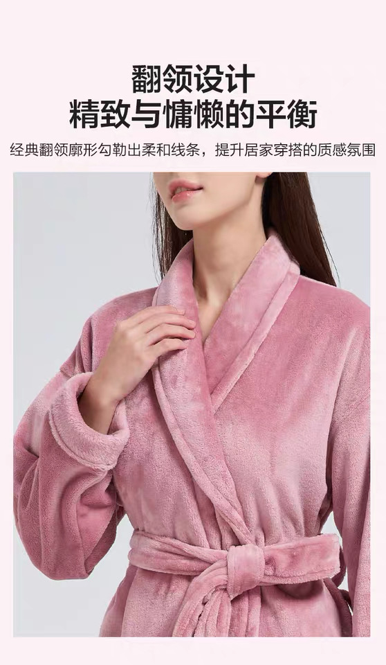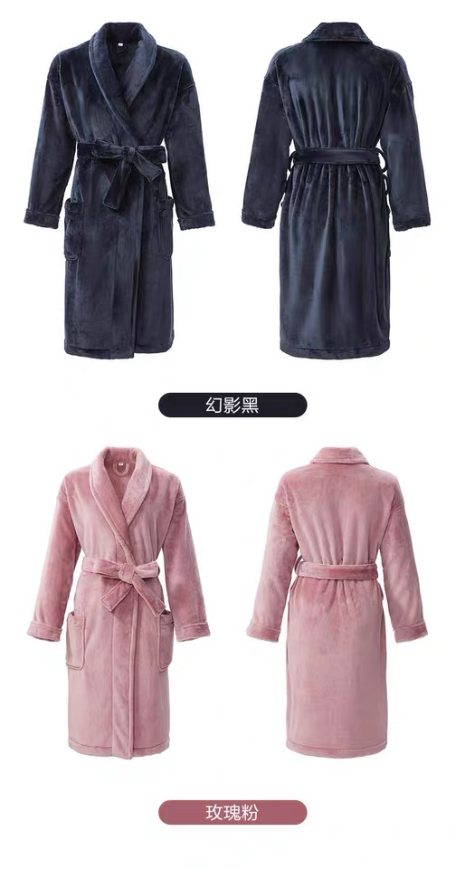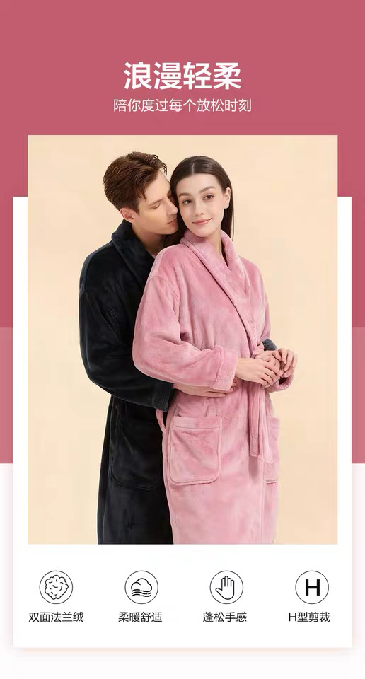 【6F】多样屋(TAYOHYA)法兰绒睡袍男加绒加厚女士浴袍秋冬款情侣睡衣珊瑚绒洗澡浴衣保暖 雪柔双面法兰绒家居袍