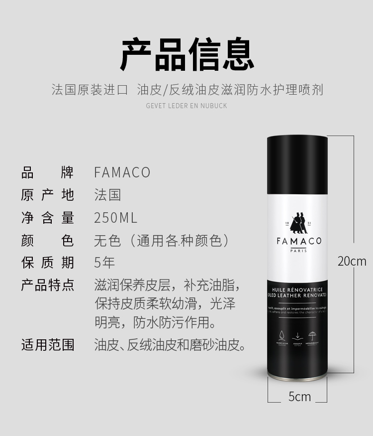 法国进口Famaco油皮/反绒皮防水滋润护理喷剂0009