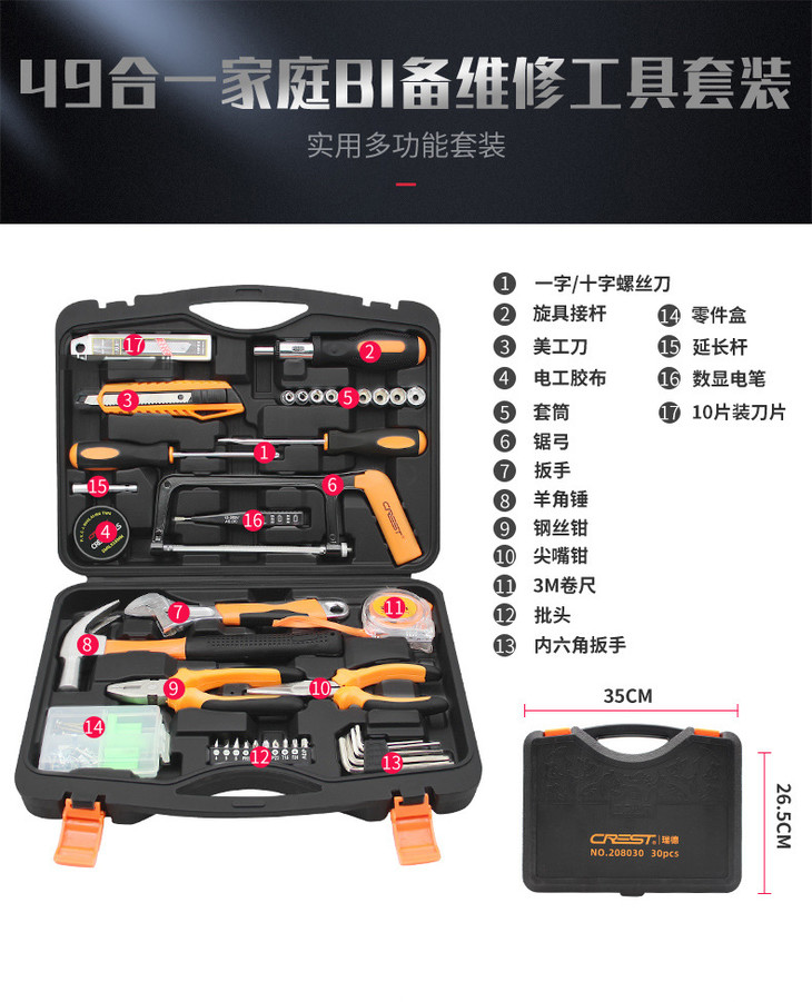 *五金工具套装家用组合汽车组套家庭手动维修理工具箱