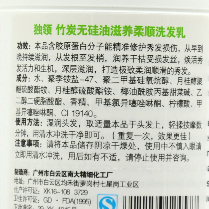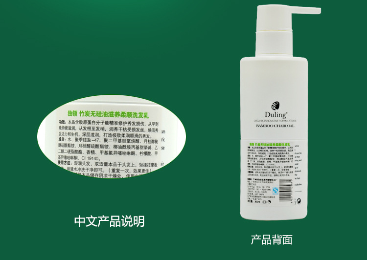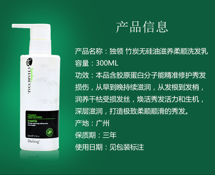 品名:独领竹炭无硅油滋养柔顺洗发乳