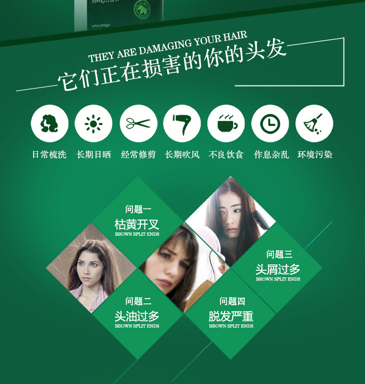 根至发梢,滋养干枯受损发丝,焕活秀发活力和生机,深层滋润,打