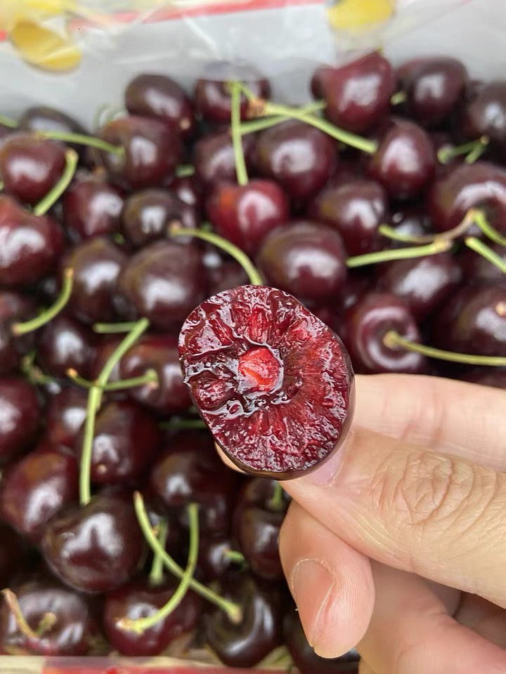 车厘子,别名又叫樱桃、含桃、荆桃等,是上市最早的乔木果实,号称"百果第一枝" 。车厘子果实大!呈暗红色,红如玛瑙、娇艳欲滴,忍不住就想咬一口!肉厚核小,可食率达92.9%!酸甜多汁,清脆爽口!车厘子因其品质的卓越,被誉为"水果中的钻石"。
