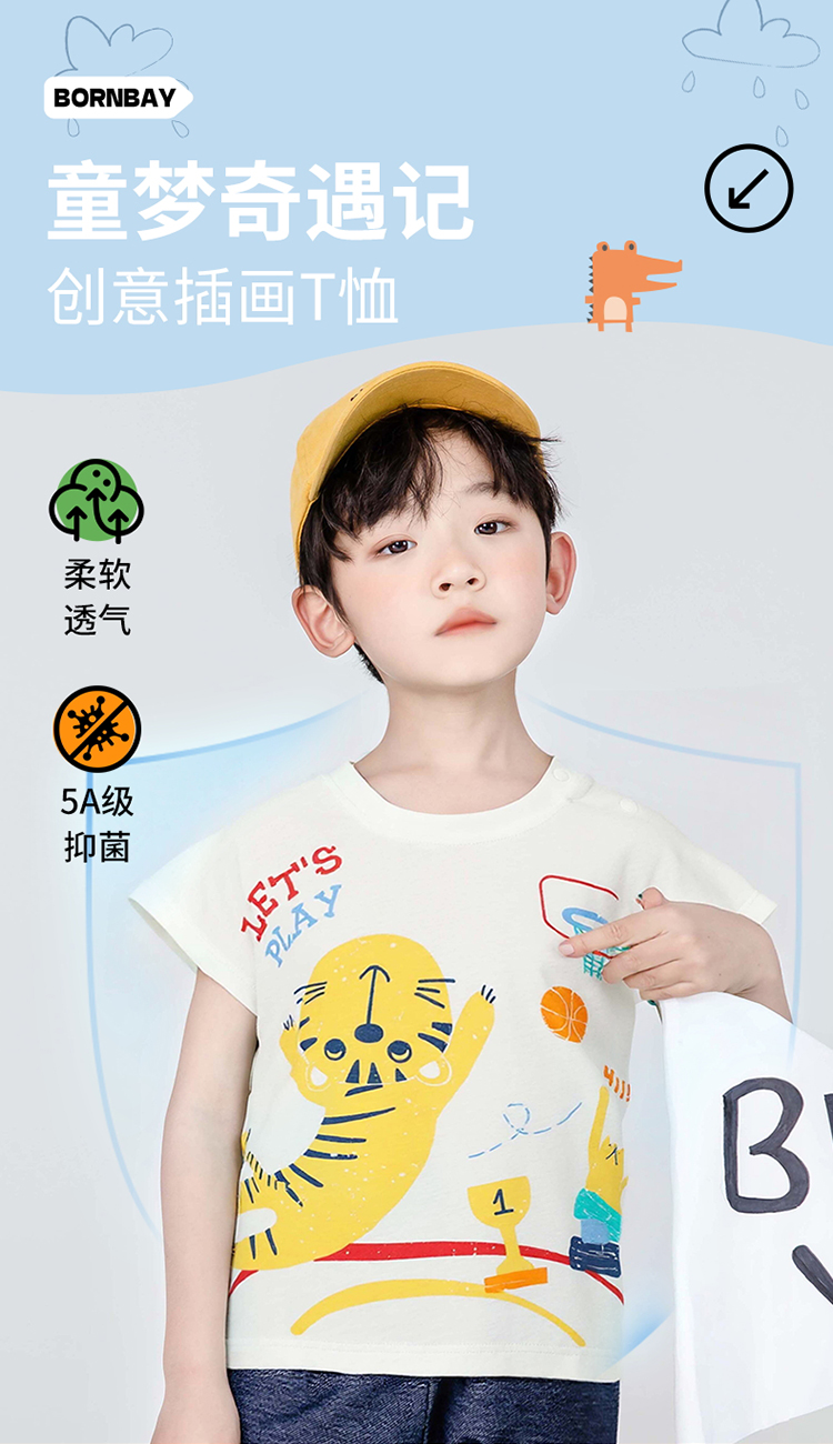 贝贝怡夏季男童短袖T恤ZB2ES033