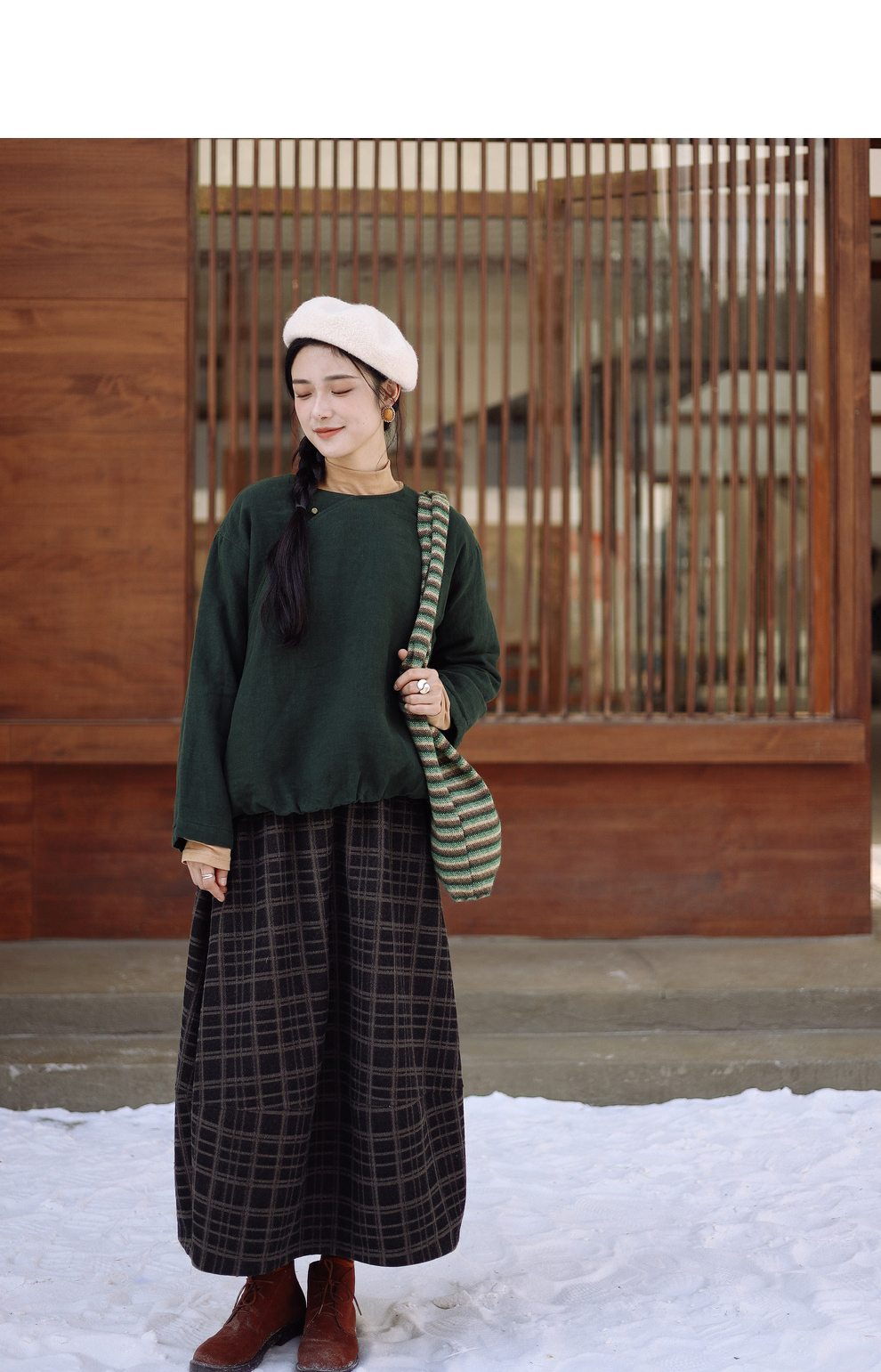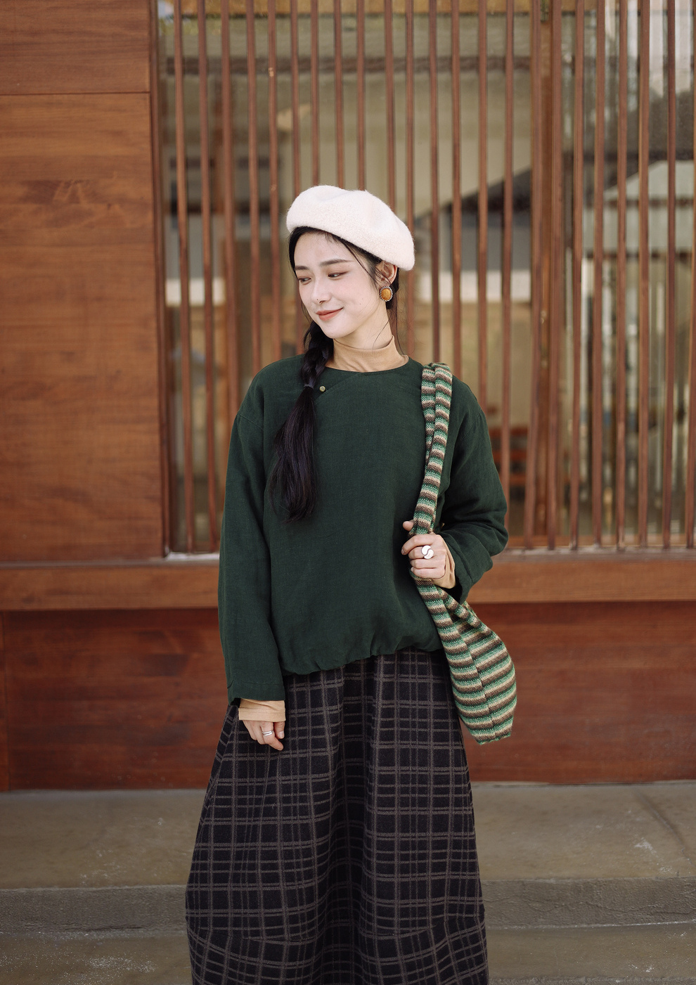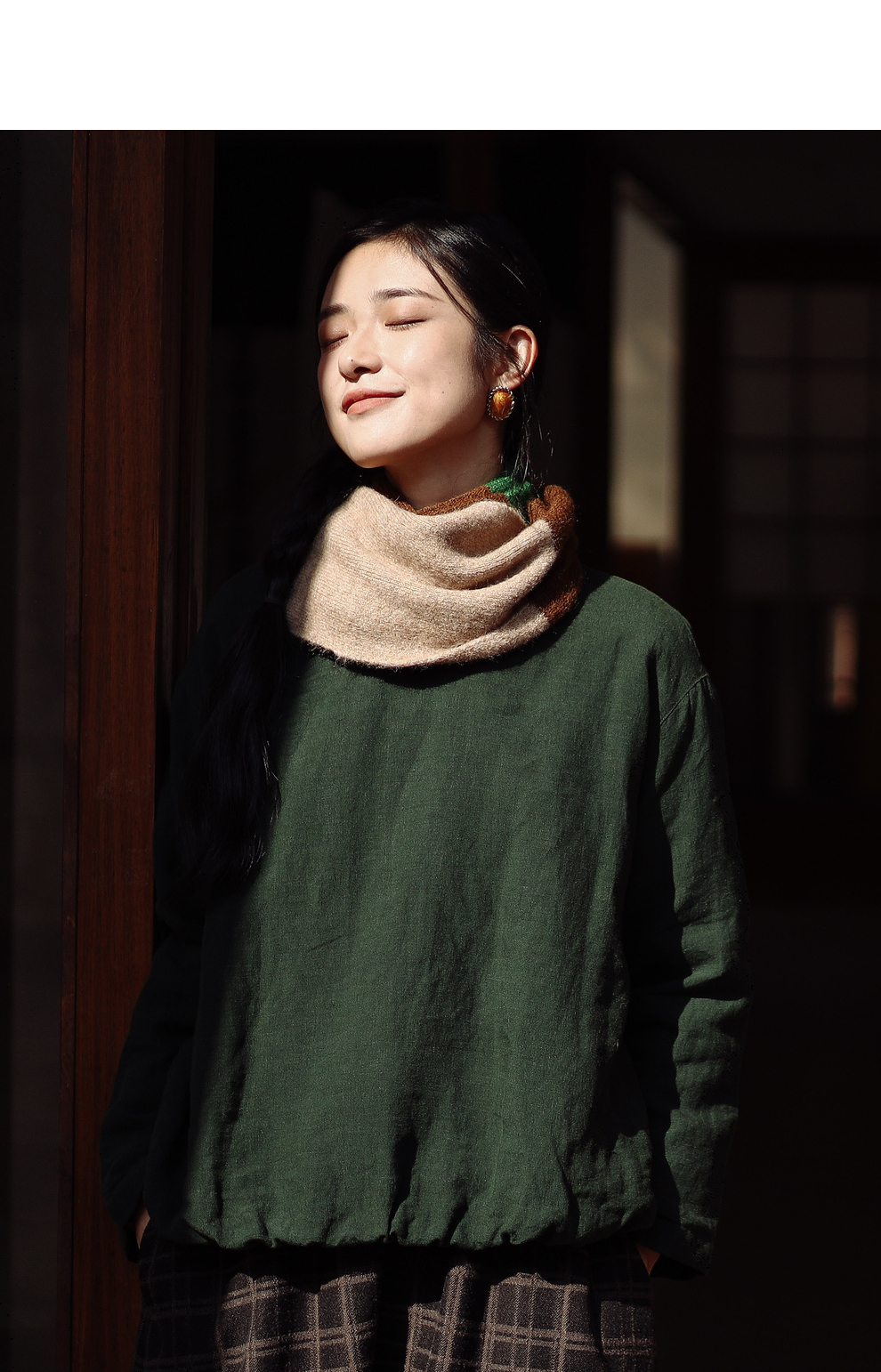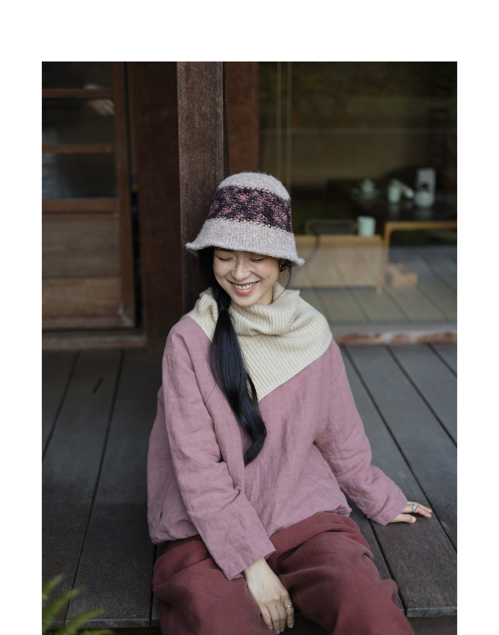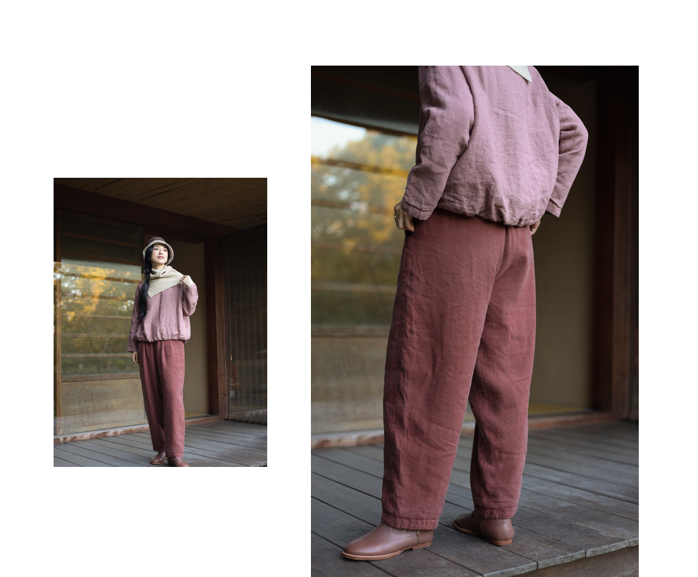 绽放928/灰粉色新中式圆领斜襟亚麻绗棉花苞型套头文艺棉服