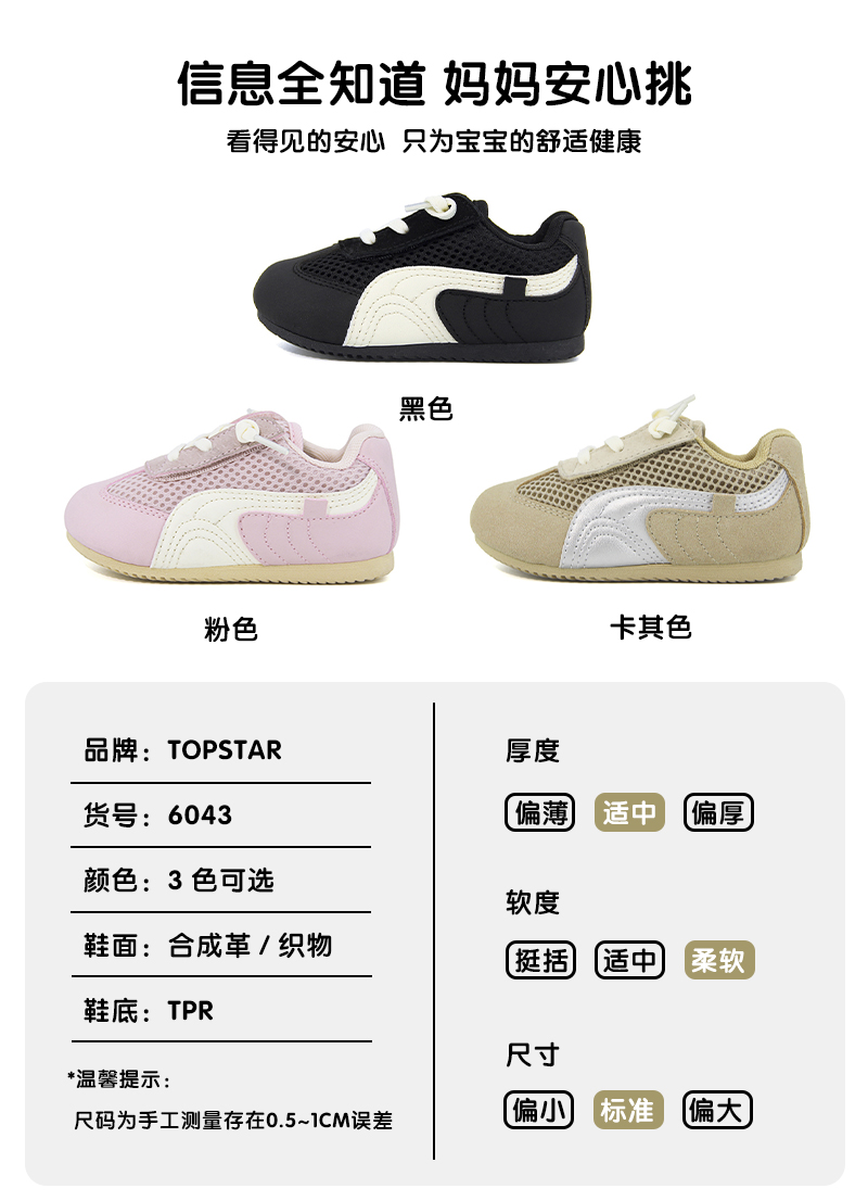 TOPSTAR2025春季新款软底儿童运动阿甘鞋6043