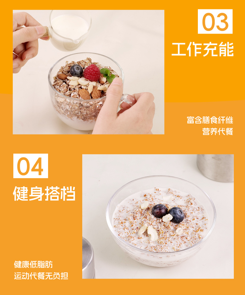 精力沛高纤黑麦片低脂无加蔗糖无脱脂营养健身代餐燕麦片1.03kg