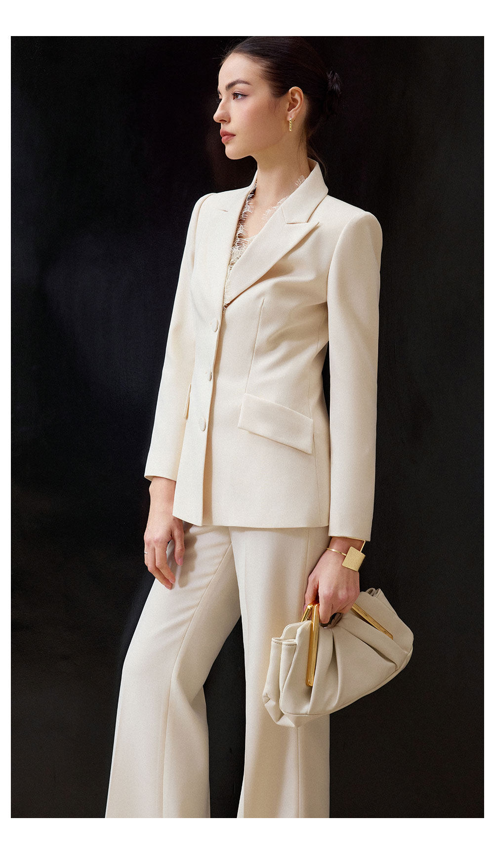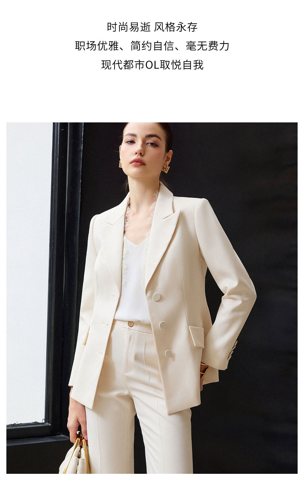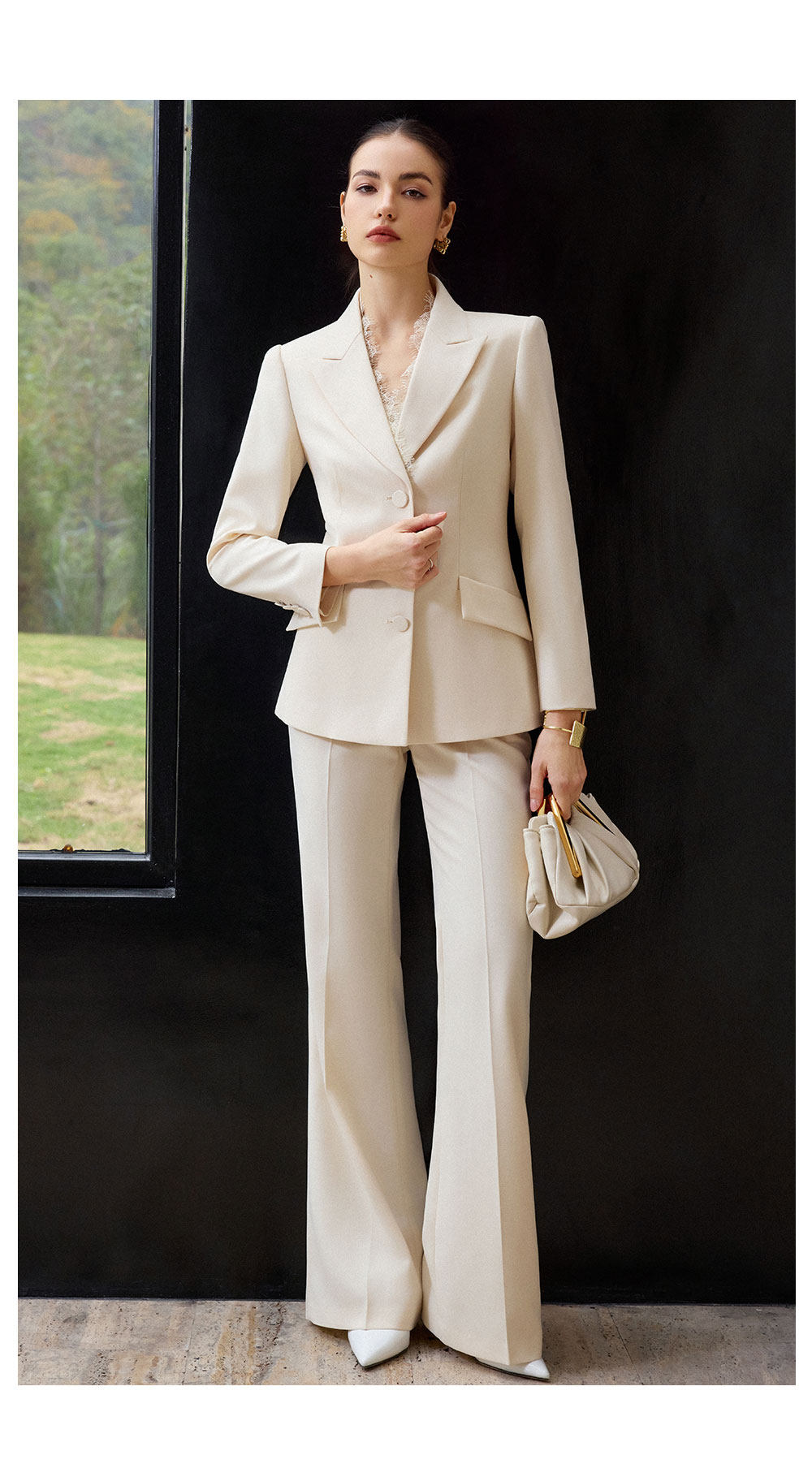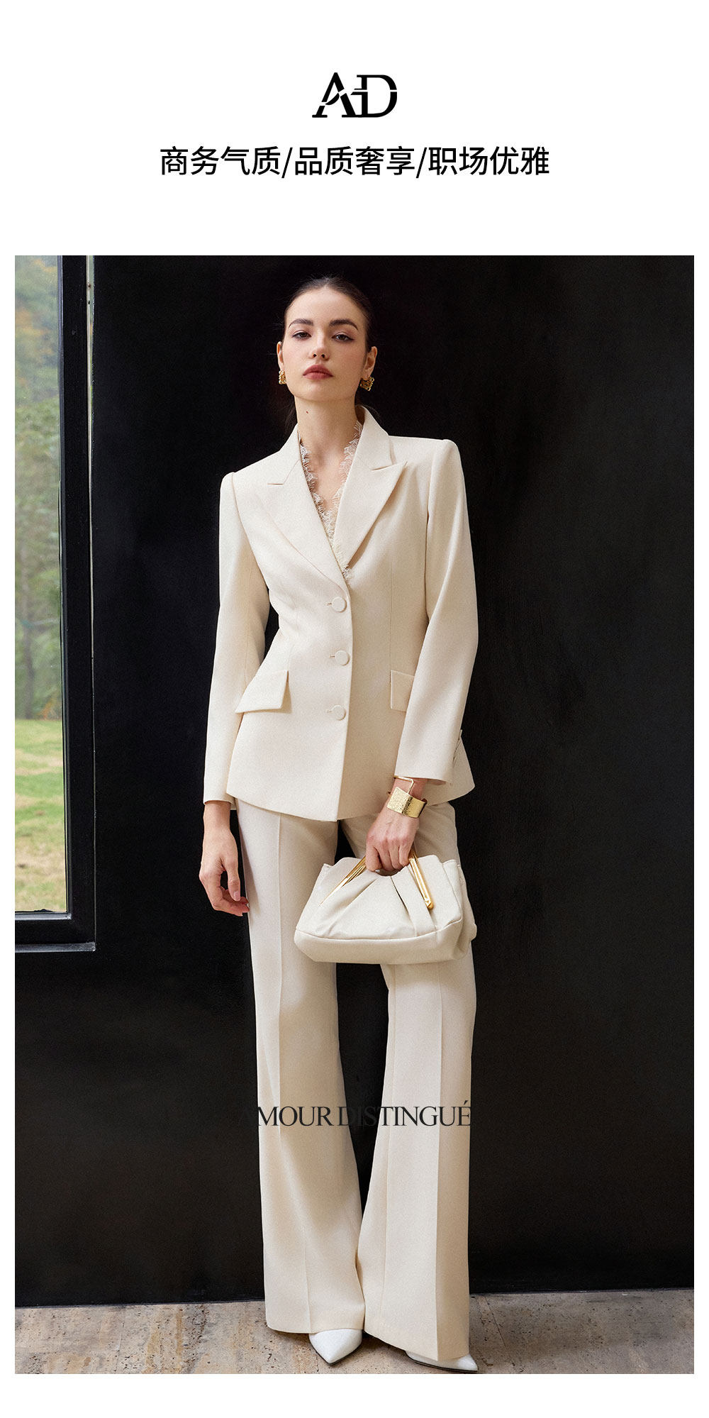 AD商务风浅米色西装套装女修身收腰西服外套阔腿裤两件套职业装