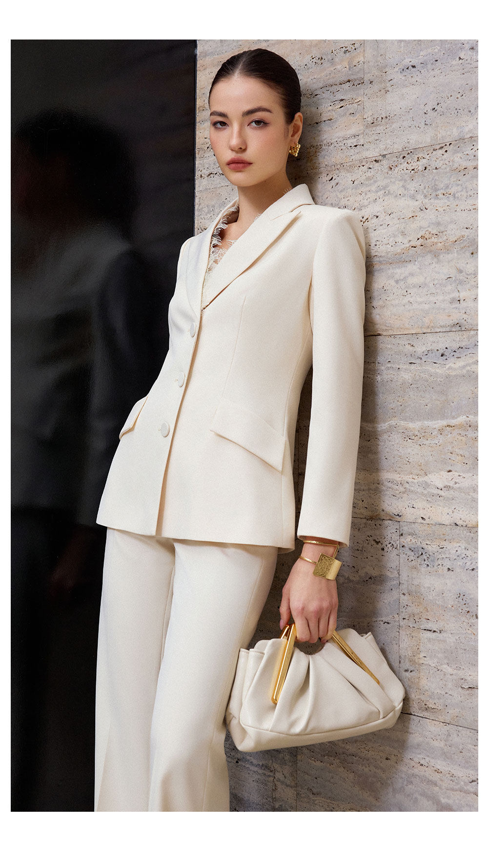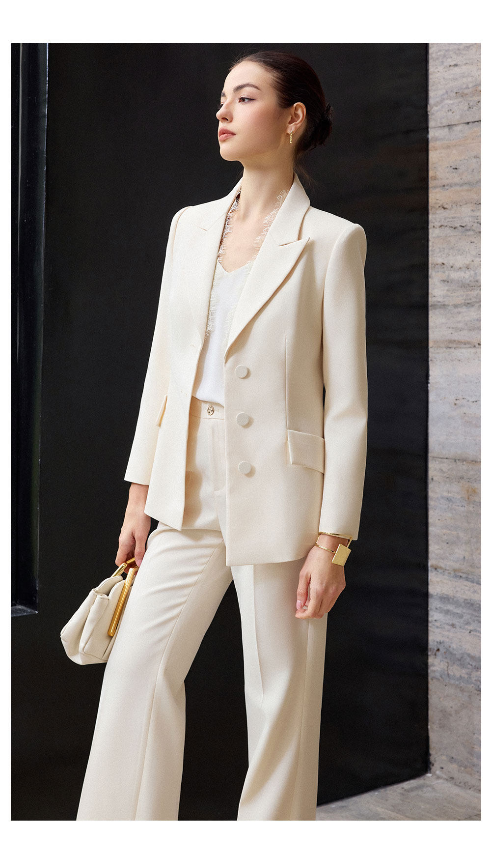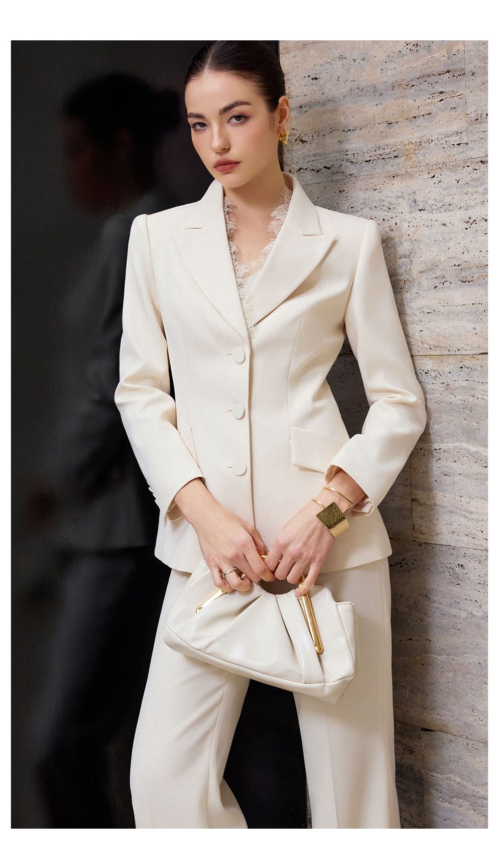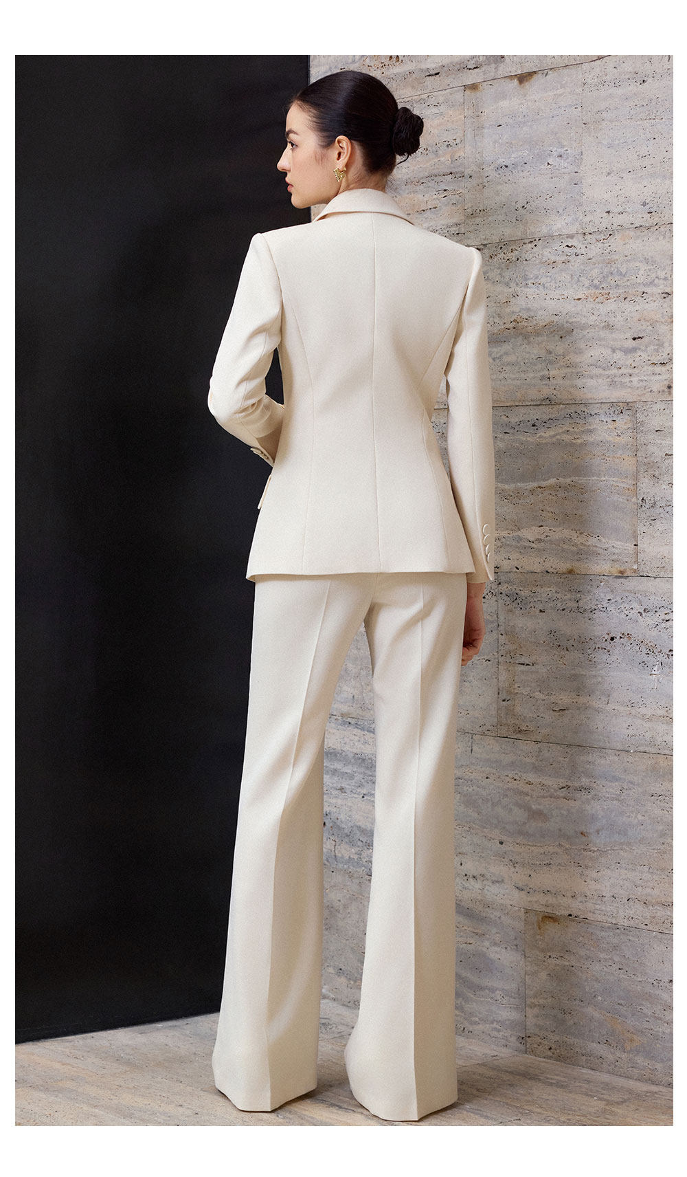 AD商务风浅米色西装套装女修身收腰西服外套阔腿裤两件套职业装