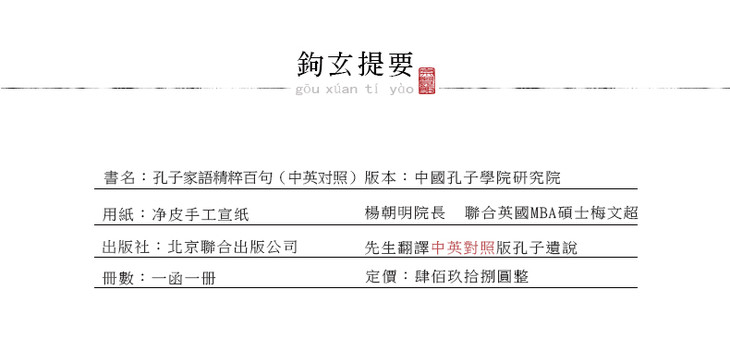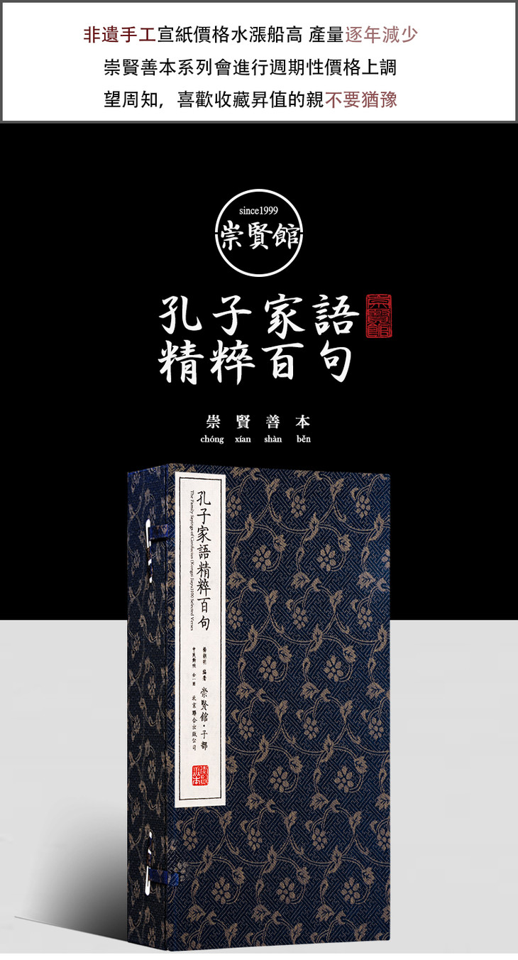 古体本《孔子家语精粹百句》 手工宣纸线装繁体竖排(一函一册)