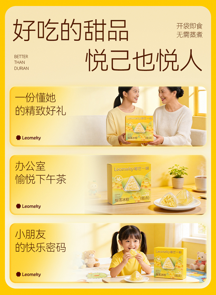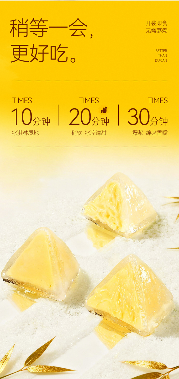 榴芒一刻榴莲冰粽糕点432克(54g*8)*1/2/3/4盒 纯榴莲果肉加量至46%冰弹糯香浓开袋即食