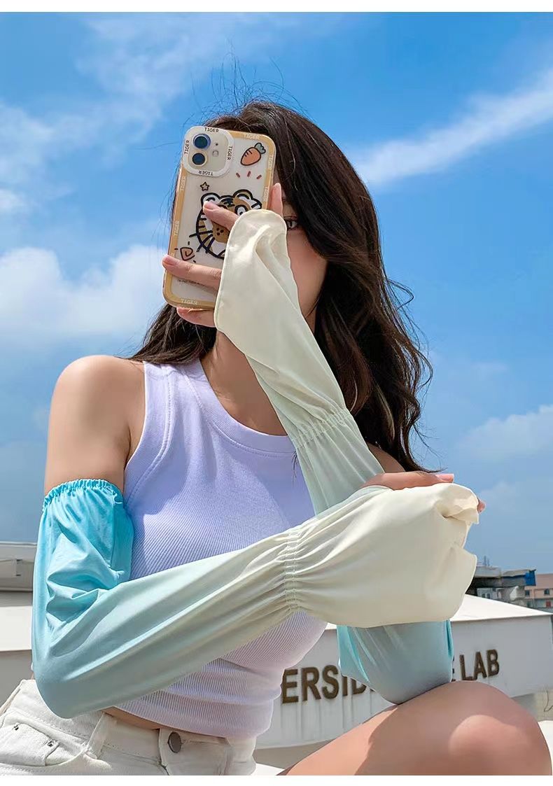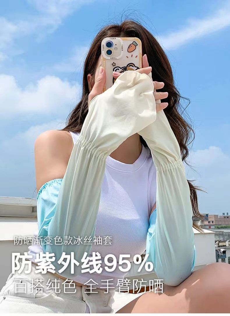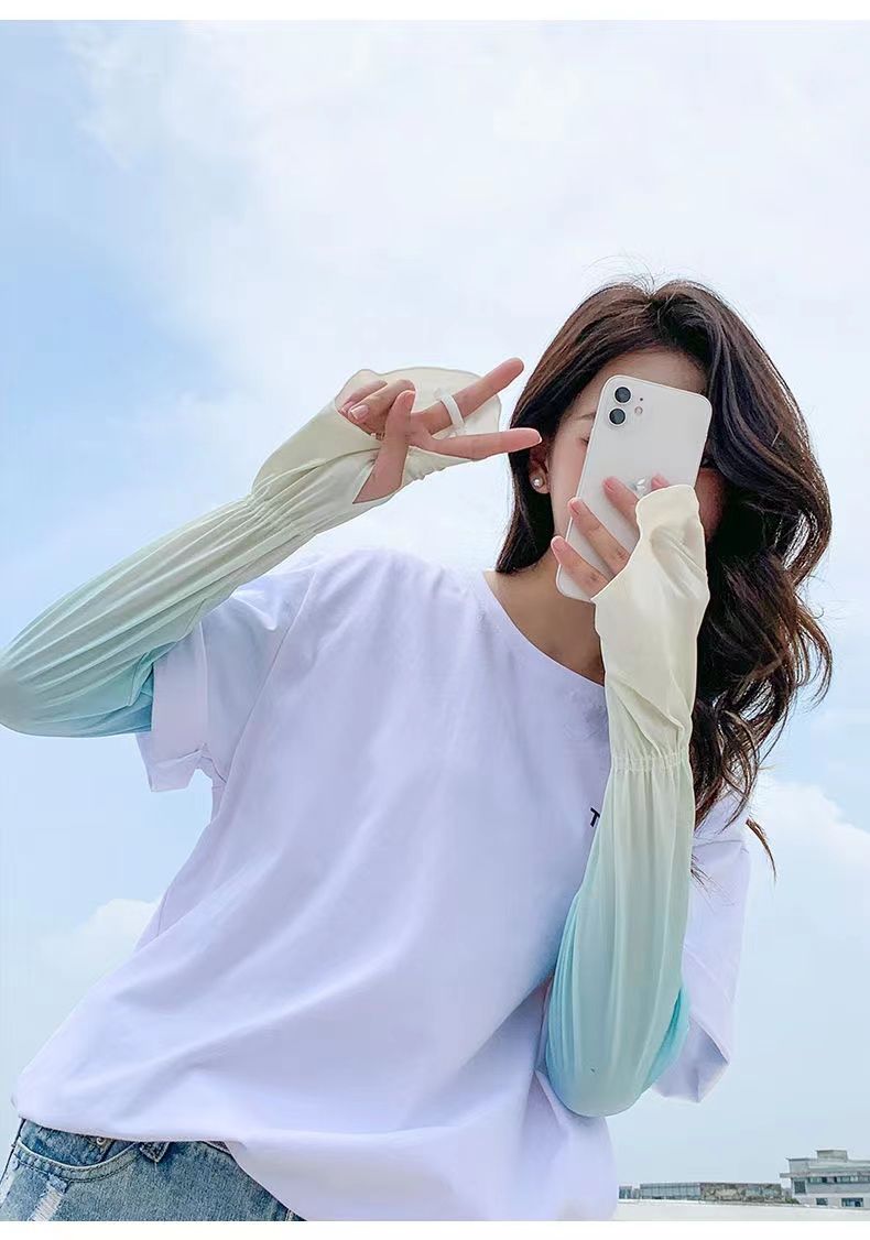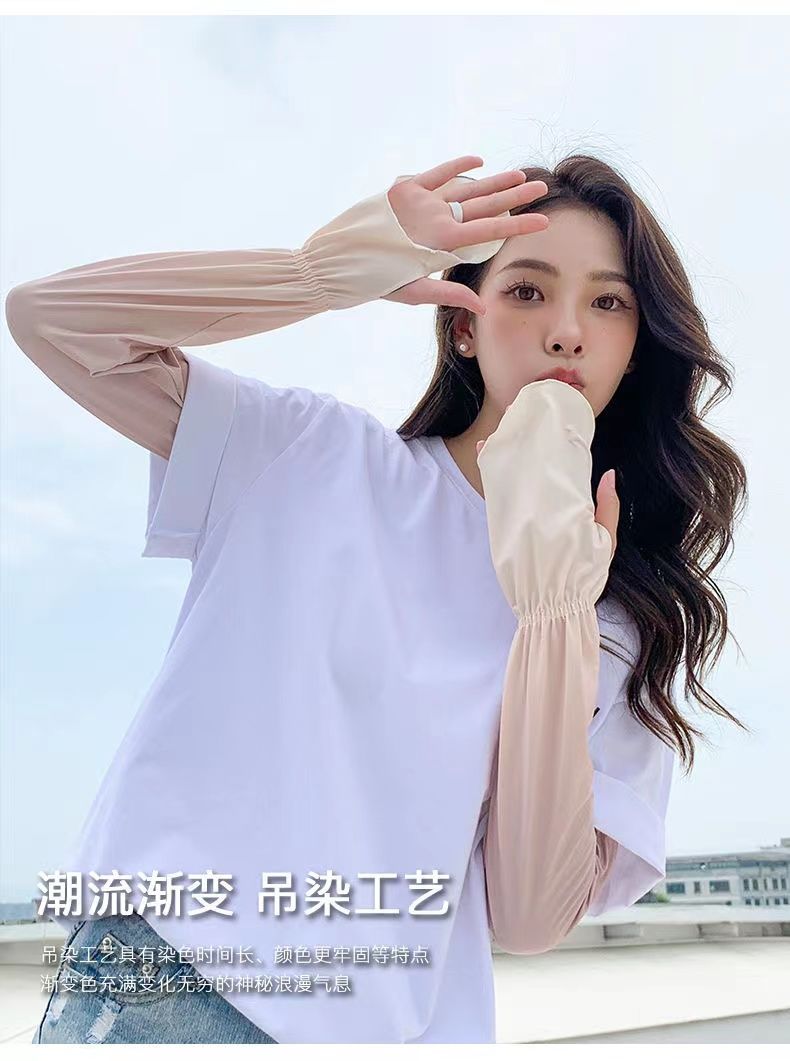 渐变冰袖防晒女夏季薄款防紫外线袖套宽松长冰丝手袖护臂开车手套