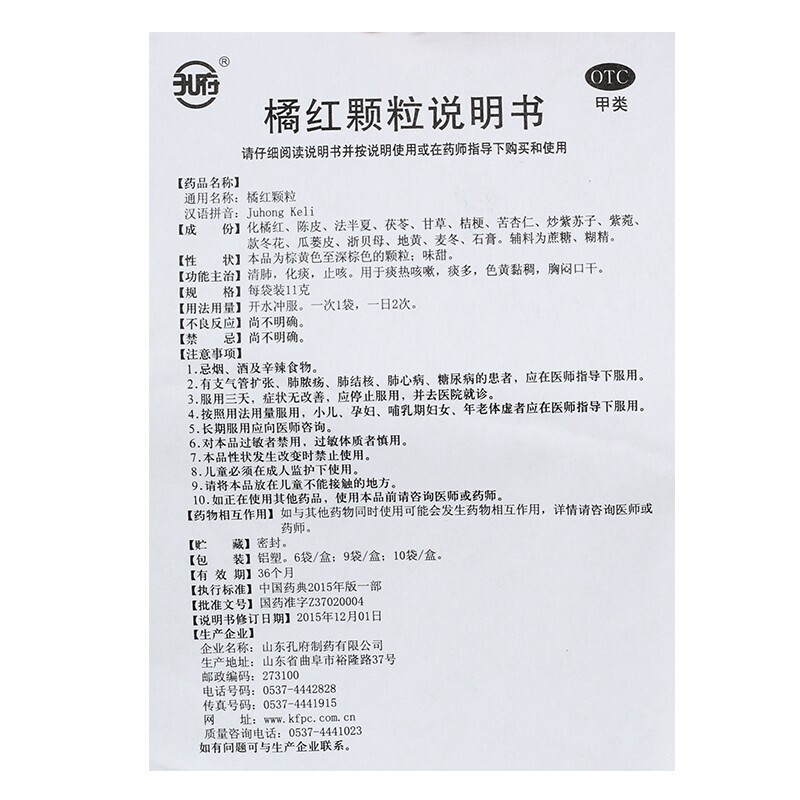 孔府 橘红颗粒 11克*6袋
