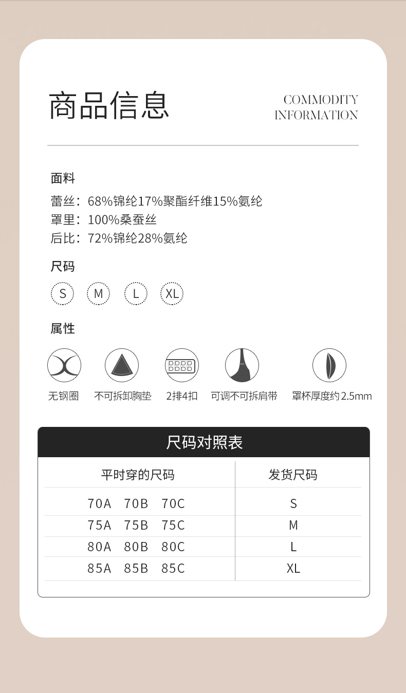 金三塔桑蚕丝内里 时尚蕾丝女士无钢圈舒适薄款文胸内衣 NZFCC304