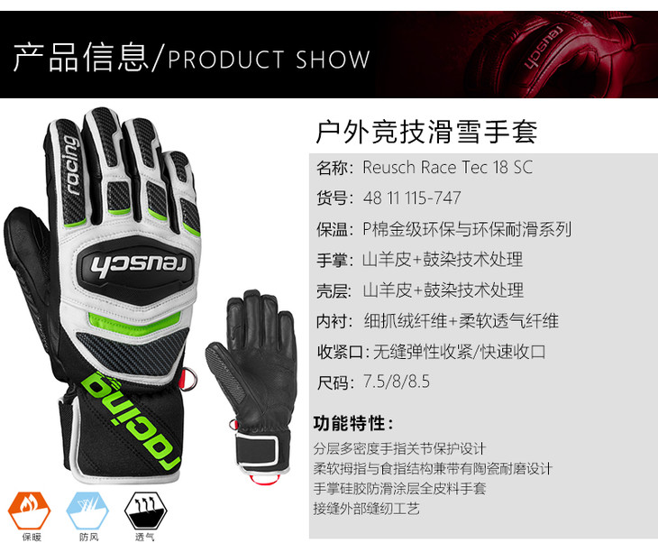 REUSCH 4811115 滑雪运动手套 Reusch Race Tec 18 SC