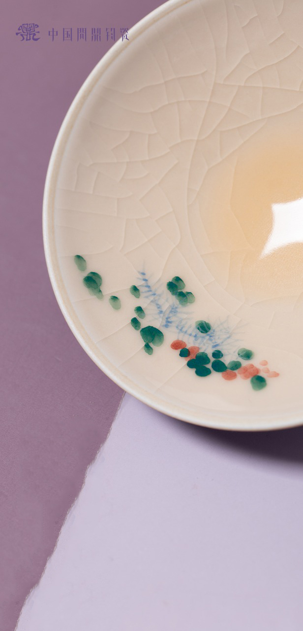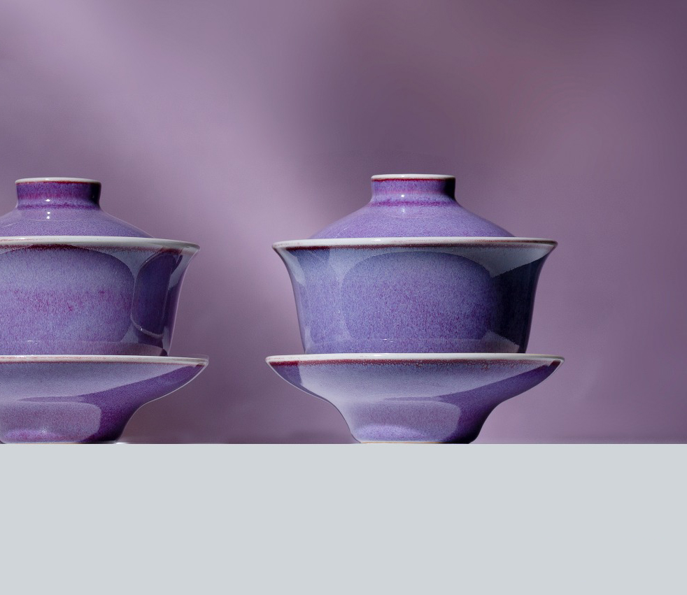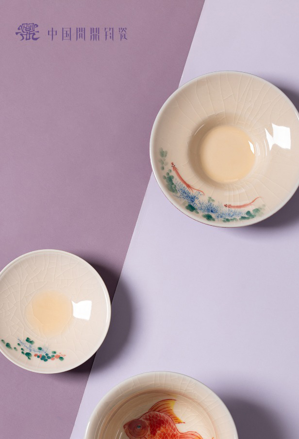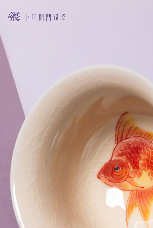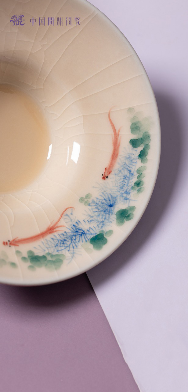 问鼎钧瓷鹅黄青花三才盖碗(如鱼得水)(缺货)