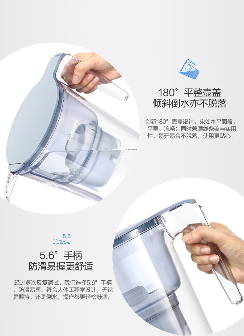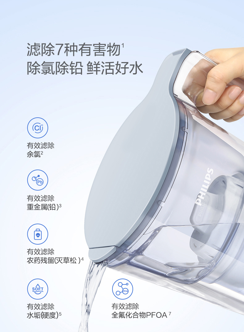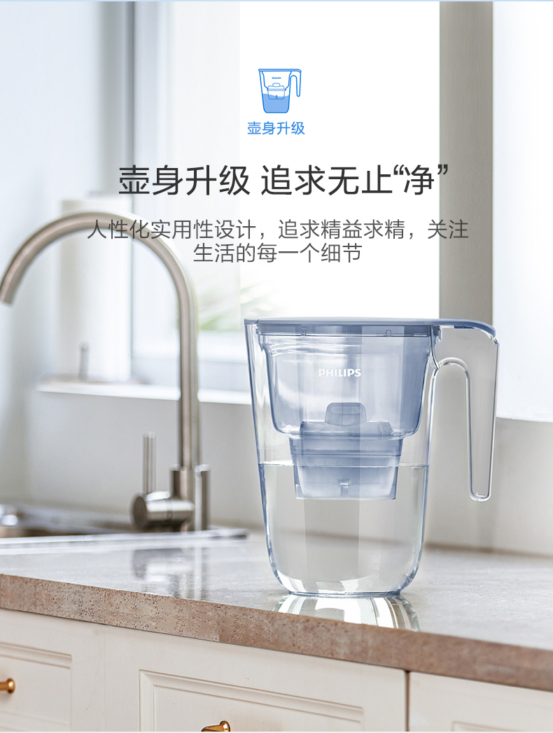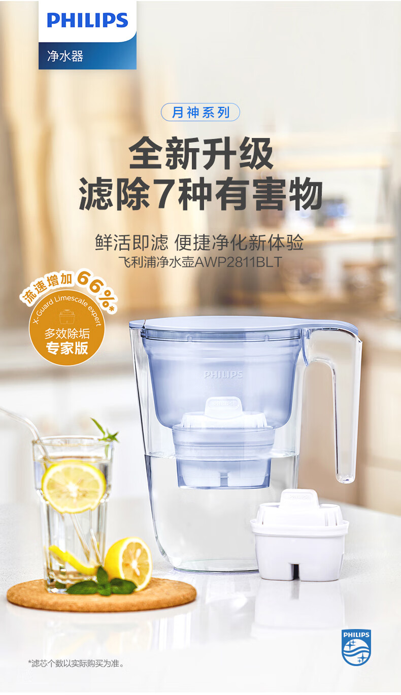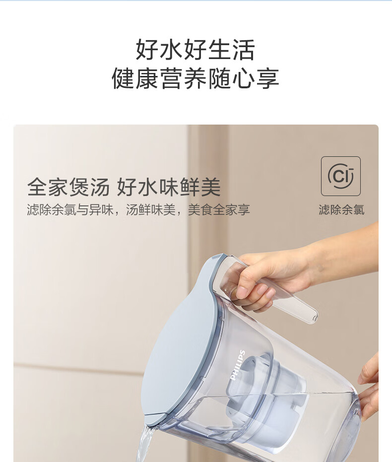 飞利浦(PHILIPS)大容量净水壶 家用滤水壶 厨房自来水过滤净水器净水壶AWP2811BLT