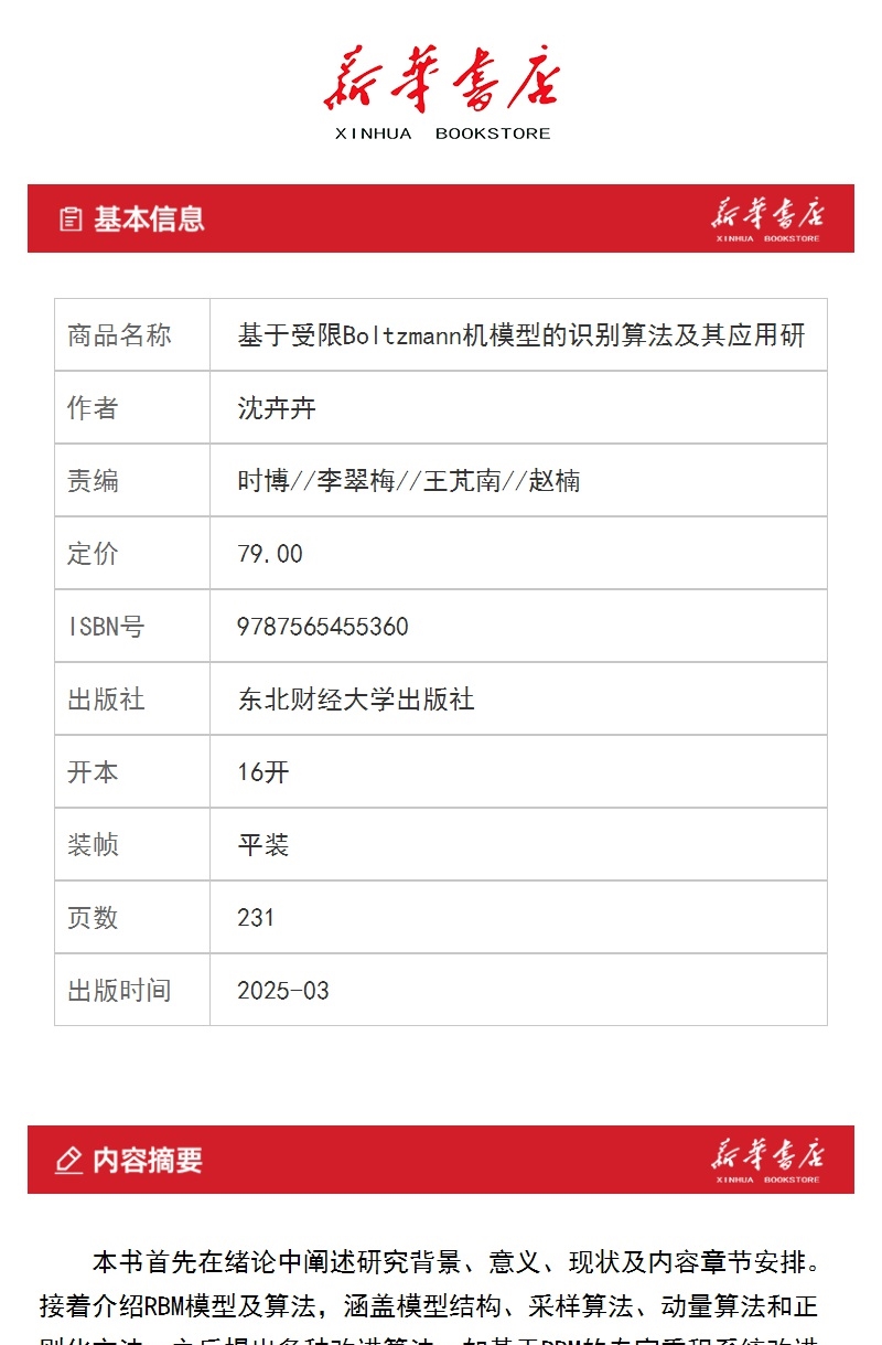 基于受限Boltzmann机模型的识别算法及其应用研究