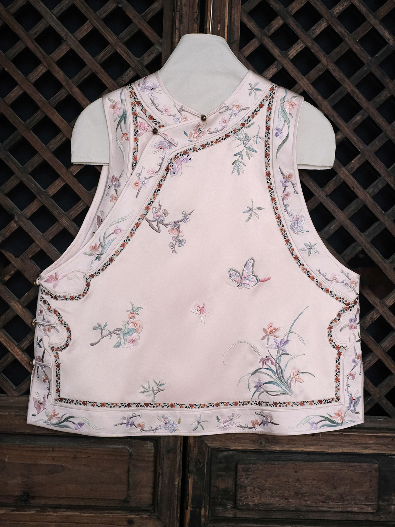 盛唐牡丹大师系列| 重工蹁跹蝶翼斜襟马甲-藕色