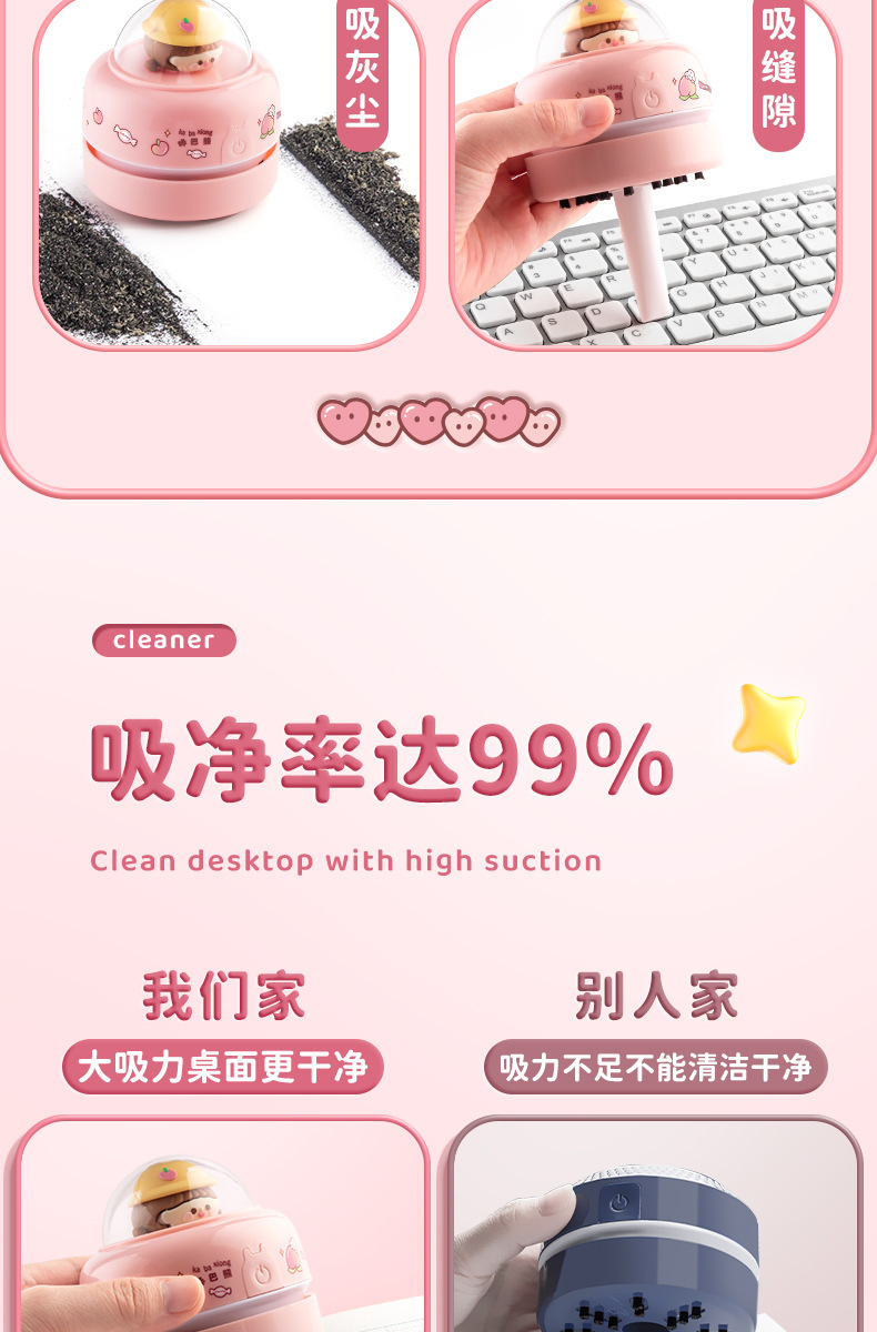 【一吸即净❗️迷你自动吸尘器】桌面吸尘器「超强吸力」超高颜值,心动不止一种,360°无死角,上升式风向不散尘,开学季儿童卡通橡皮纸屑,办公桌面专用灰尘神器L