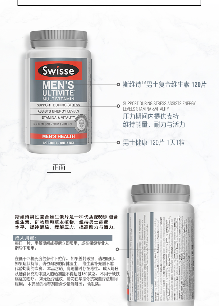 Swisse 斯维诗男士多维片含钙维生素b族片成人120粒