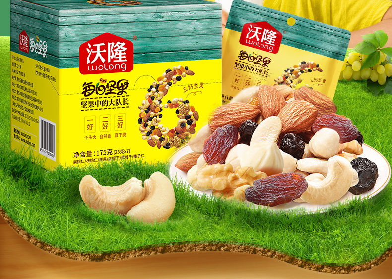 沃隆超级每日坚果175g学生款混合装营养零食大礼包7日装小包装