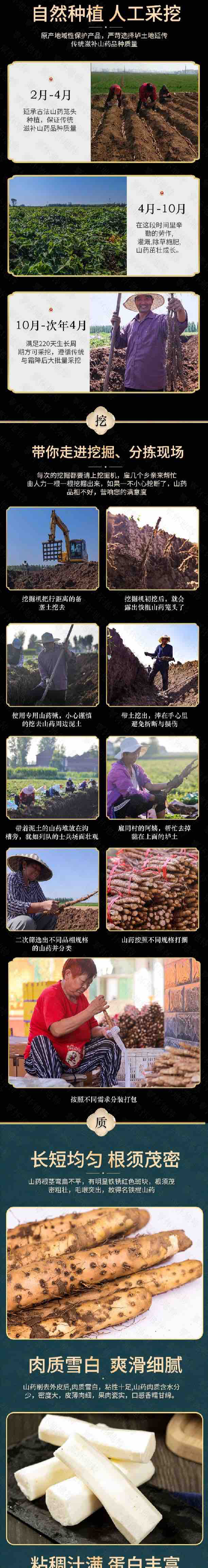 8、因垆土地土质坚硬,粘性大、所以山药外观相较与沙土山药外观较丑、所以不因山药外观喜好而做售后。(我们会挑选条形匀称外观相对工整的山药发货,剔除畸形山药)