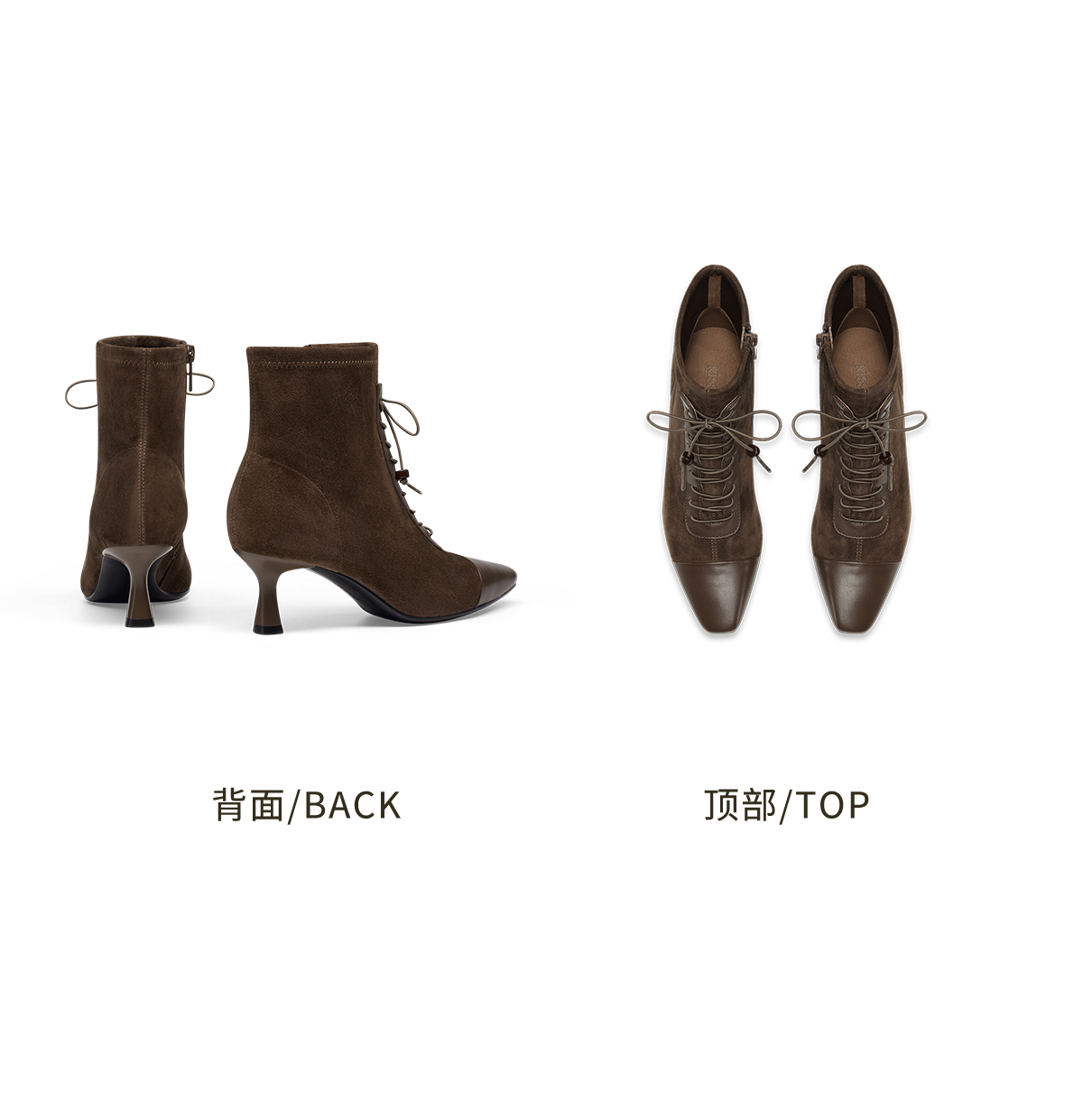 【云粉节】BF楼KISSCAT接吻猫[唐顿庄园]高跟靴25新方头复古美拉德马丁时装靴女KA65713-10吊牌价1599活动价899